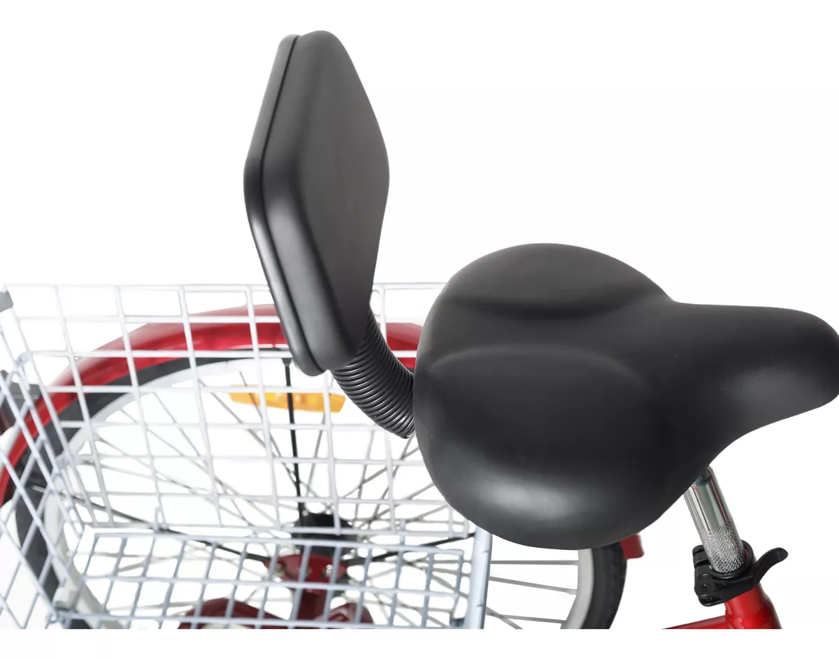 La tricicleta también cuenta con una canasta espaciosa montada en la parte trasera, lo que la convierte en una opción práctica para transportar objetos personales, compras o incluso una mochila. La canasta se asegura firmemente y es lo suficientemente amplia como para llevar artículos de tamaño mediano, lo que la convierte en una elección conveniente para aquellos que necesitan llevar cosas consigo mientras disfrutan de su paseo en tricicleta.