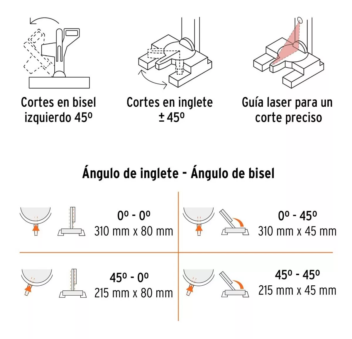 Capacidad de corte 45x45 grados