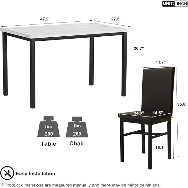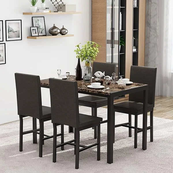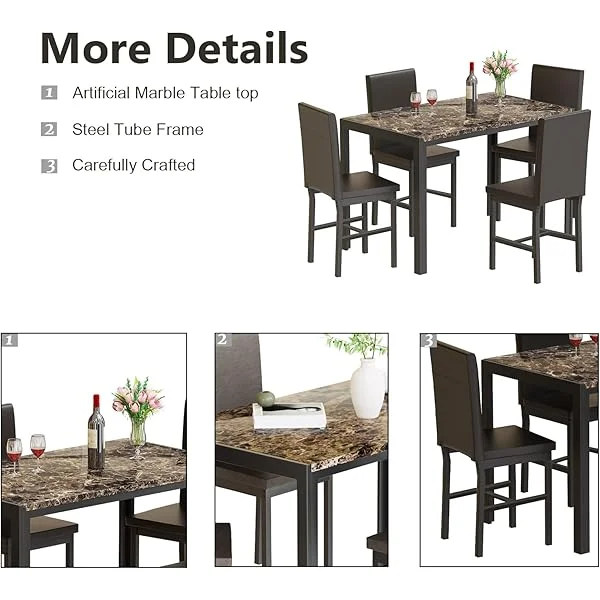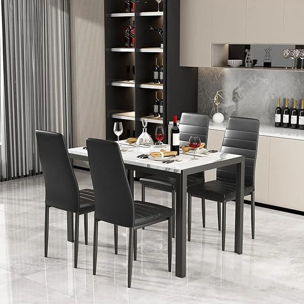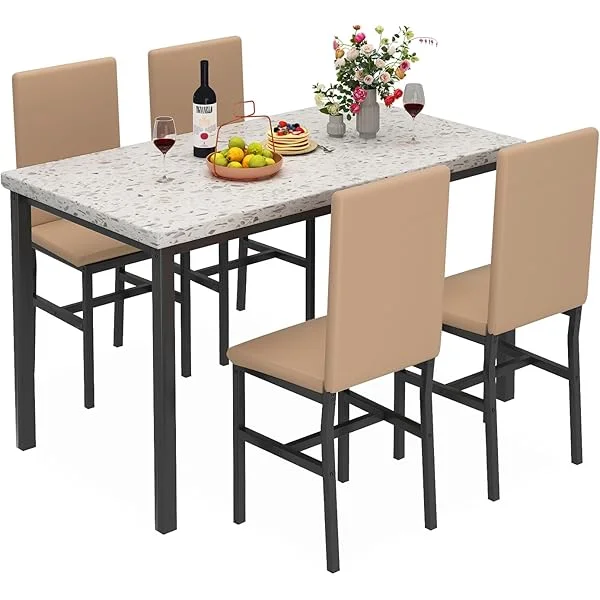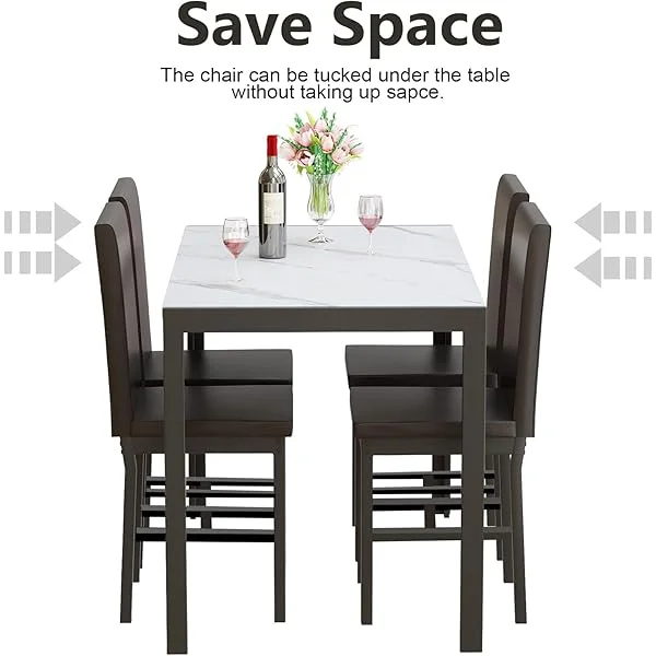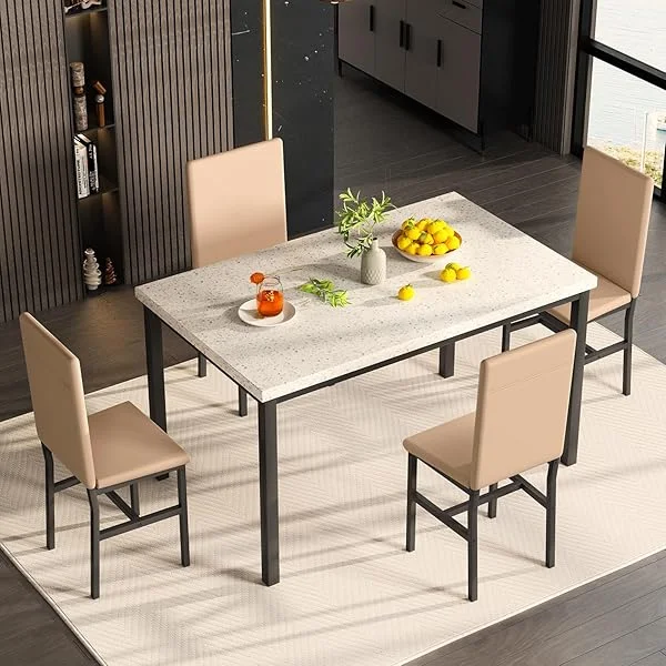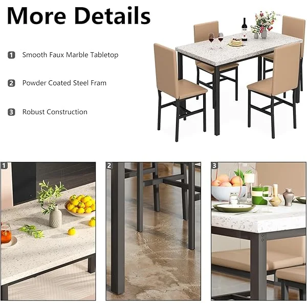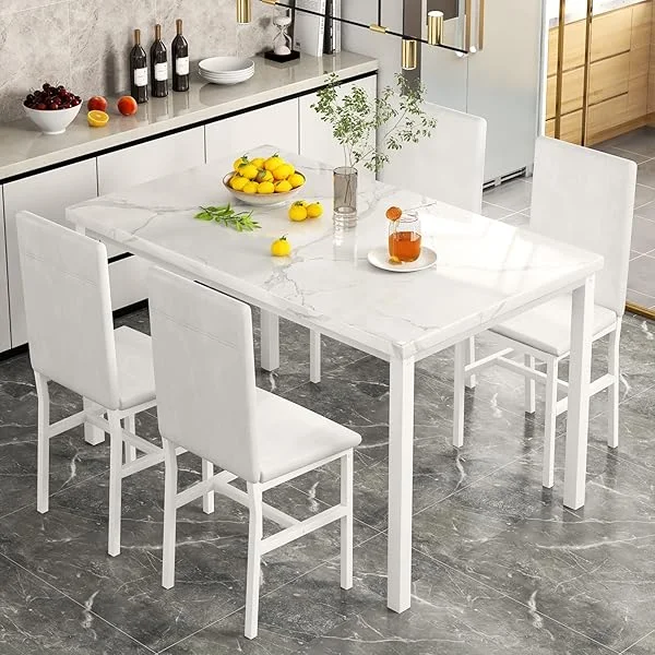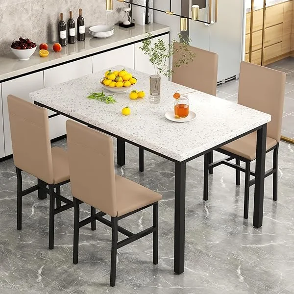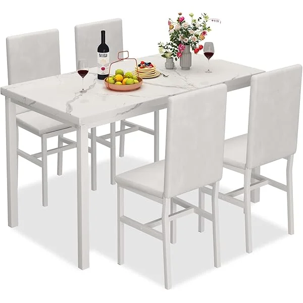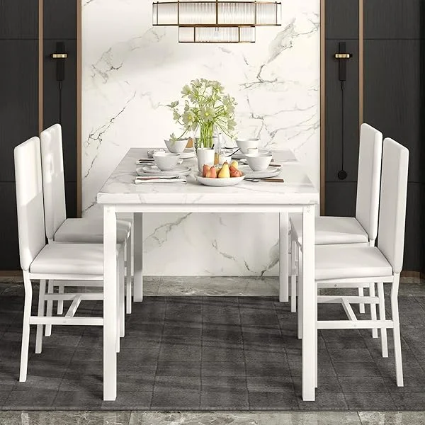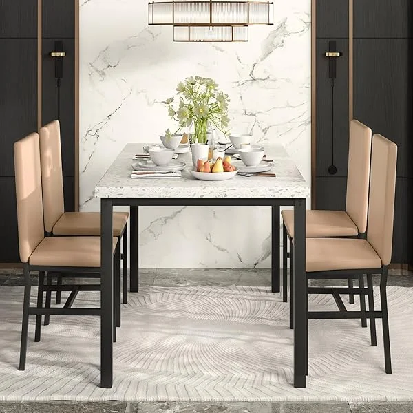 Juego de mesa de comedor para 4, 5 piezas de mármol DiningTableSet