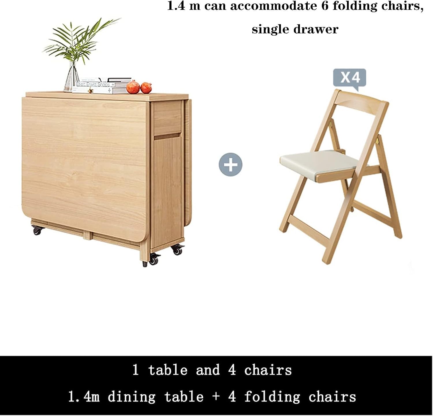 Juego de mesa plegable de comedor plegable, mesa de comedor extensible de madera con 4 sillas