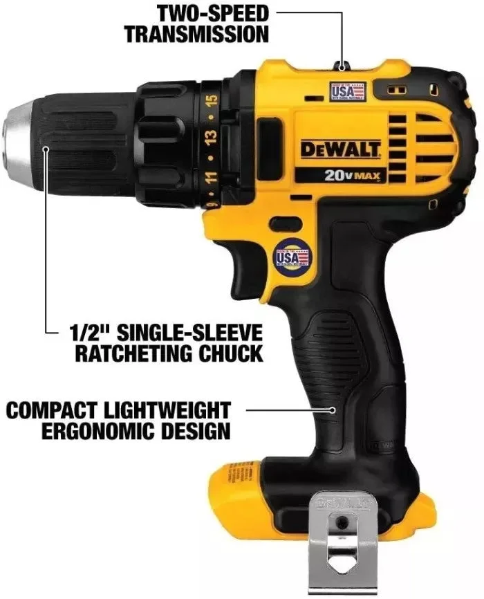 - DCD780 DEWALT 20V MAX* Taladro/destornillador de 1/2 pulgada en kit combinado de herramientas inalámbricas con transmisión de dos velocidades (0-600/0-2000 RPM)