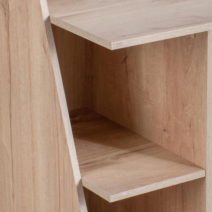 El Escritorio con Librero tiene lateral en diagonal y 2 espacios abiertos para que organices carpetas, libros u objetos decorativos. Este producto es fabricado y ensamblado en Colombia. Fabricado en tablero de aglomerado o MDP con recubrimiento melamínico, logrando dar estabilidad y durabilidad al mueble. Los herrajes son metálicos y nuestra madera proviene de bosques 100% cultivados.