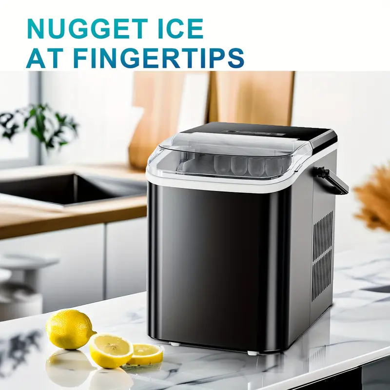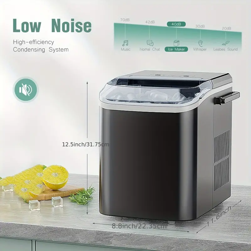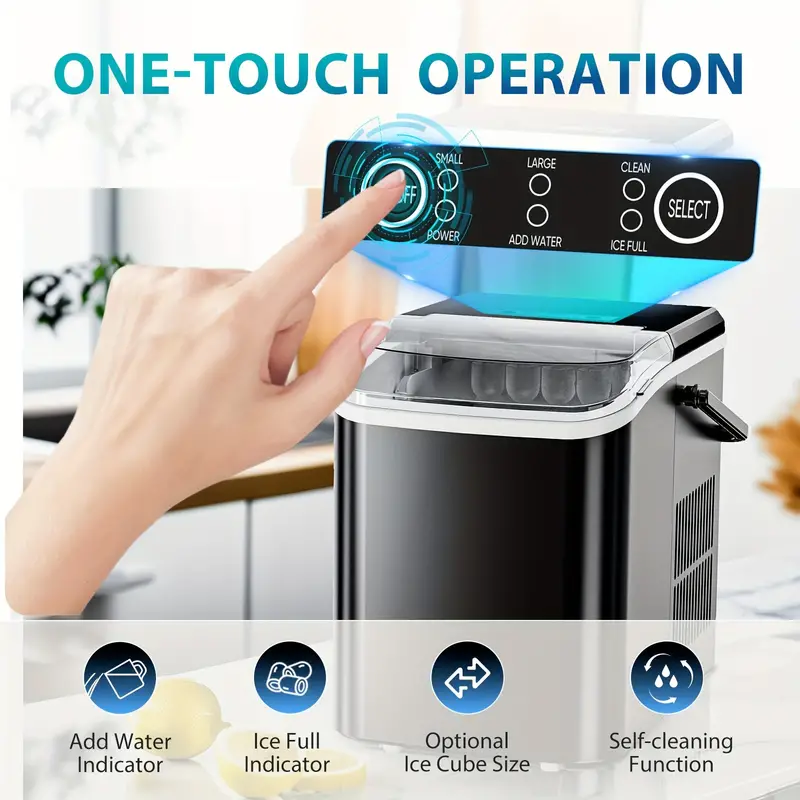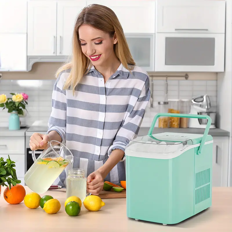 Máquina de hielo portátil DUMOS para encimera, autolimpiable, 9 cubos en 6 minutos, 26.5 libras/24 horas, 2 tamaños de hielo en forma de bala, con pala de hielo, cesta y asa