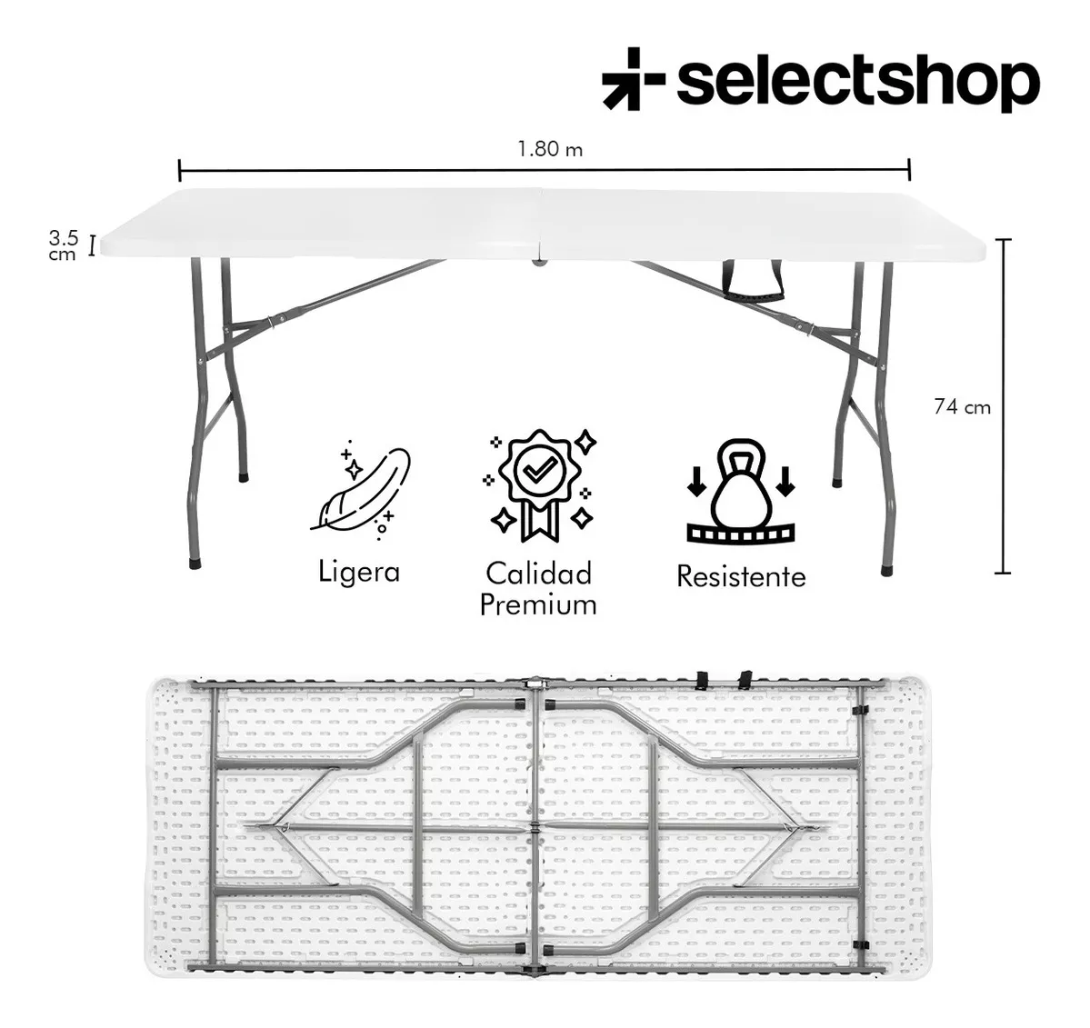 Tamaño Adecuado: Con una longitud de 180 cm, esta mesa ofrece un amplio espacio para colocar alimentos, bebidas, juegos u otros objetos durante tus reuniones. Es lo suficientemente grande para acomodar a varias personas cómodamente.
