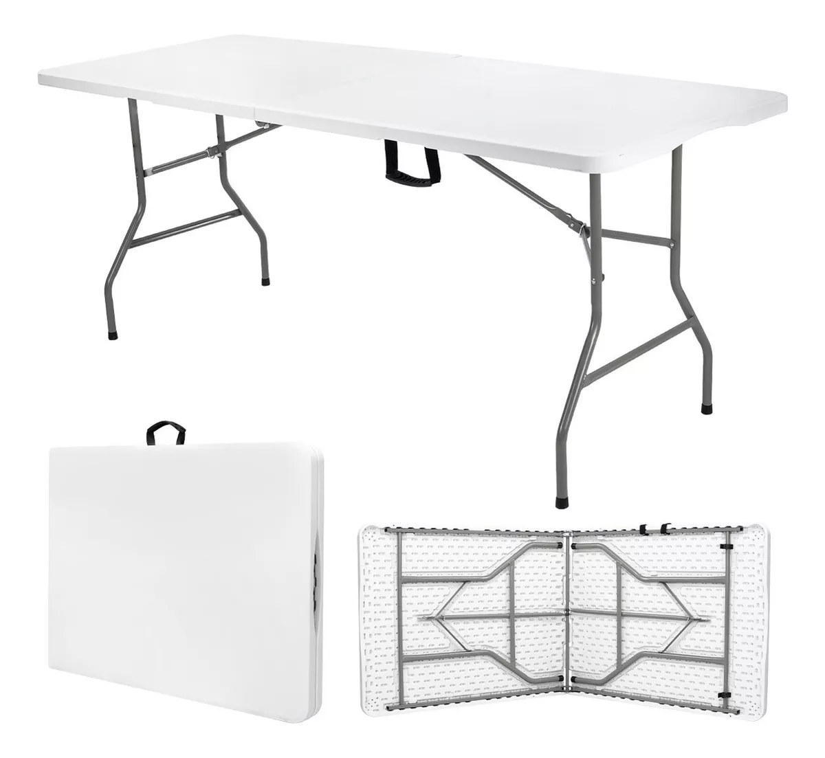 Mesa Plegable Portátil de Plástico 180 cm - Tipo Portafolio para Exfteriores y Eventos en Color Blanco