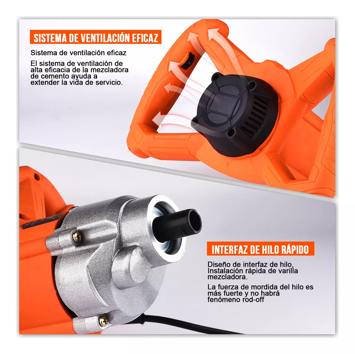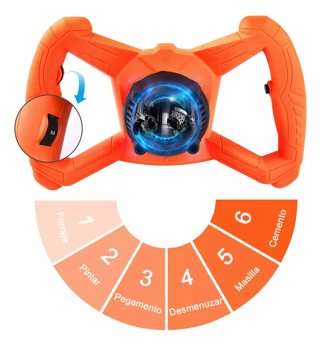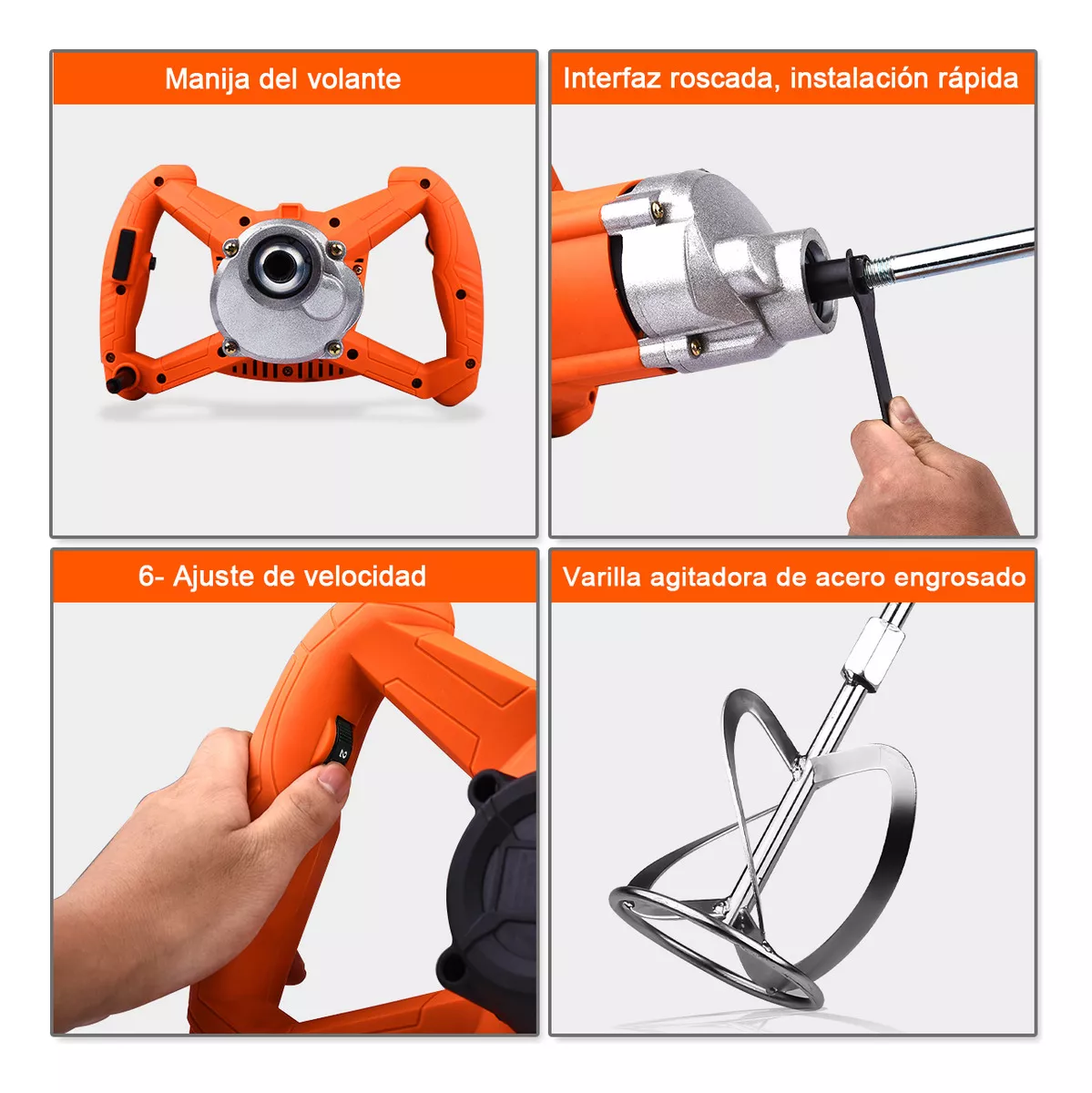 - 6 velocidades ajustables: las velocidades altas y bajas tienen 6 velocidades. Con su propia cerradura de interruptor, puede aplicar varios materiales. Con la paleta doble espiral, la mezcla es efectiva y completa, lo que ahorra mucho tiempo y evita que el mortero salpique por todos lados.