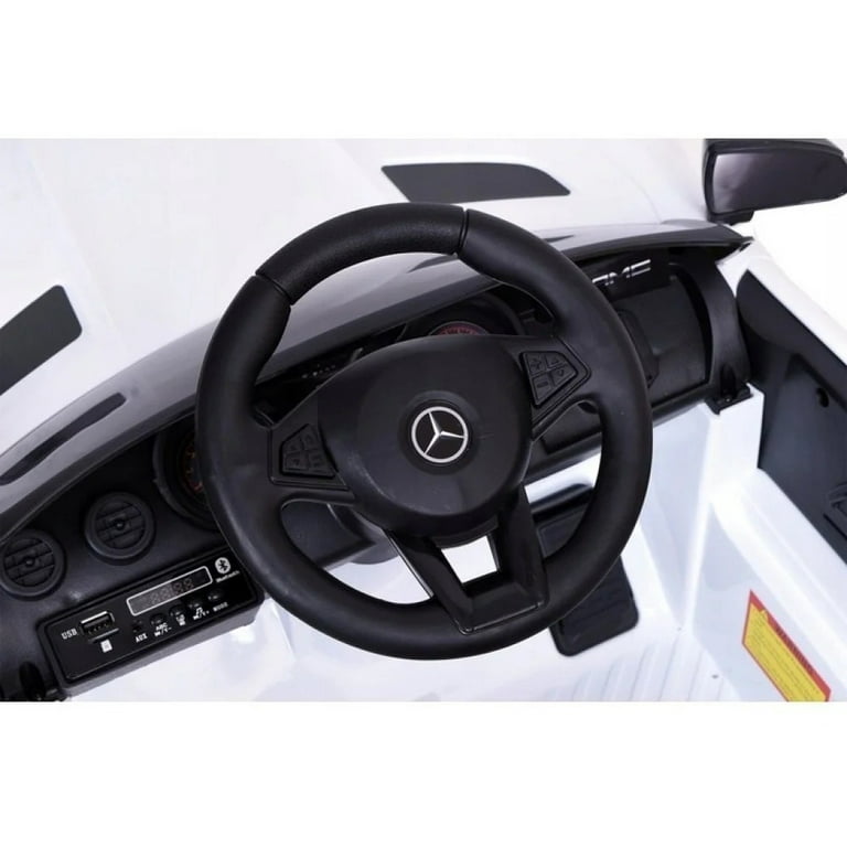 • [Seguridad] El Mercedes Montable Electrico cuenta con cinturón de seguridad y seguro en las puertas para mayor seguridad en el viaje. Su velocidad máxima es de 2.5 km/h