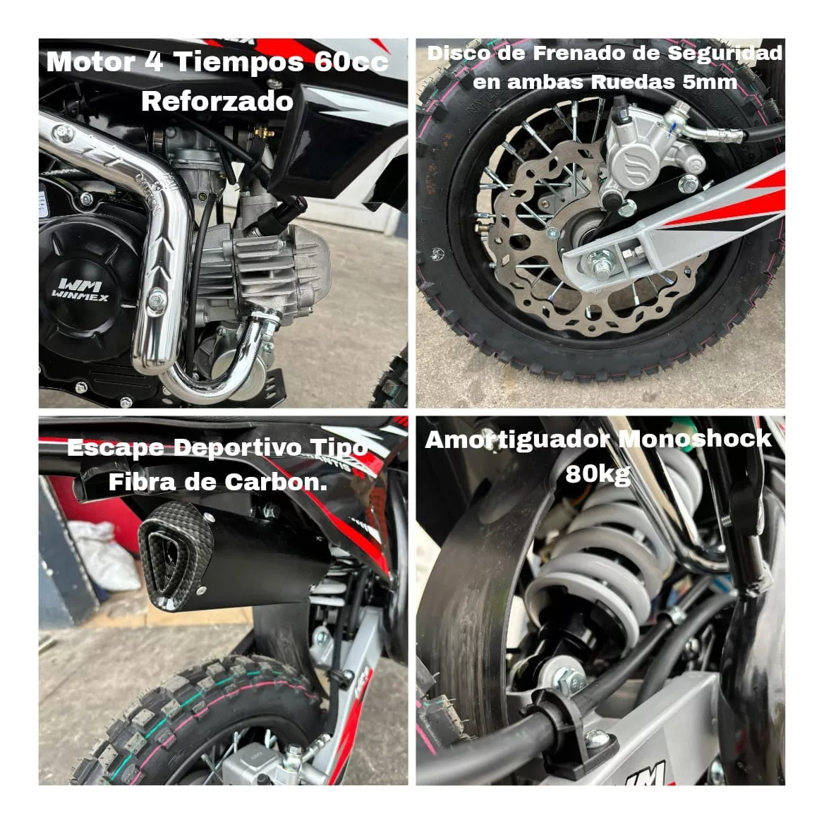 -Mini Motocross Motor a Gasolina 4 tiempos 60cc 2.7hp 3.2 Torque (7000RPM)