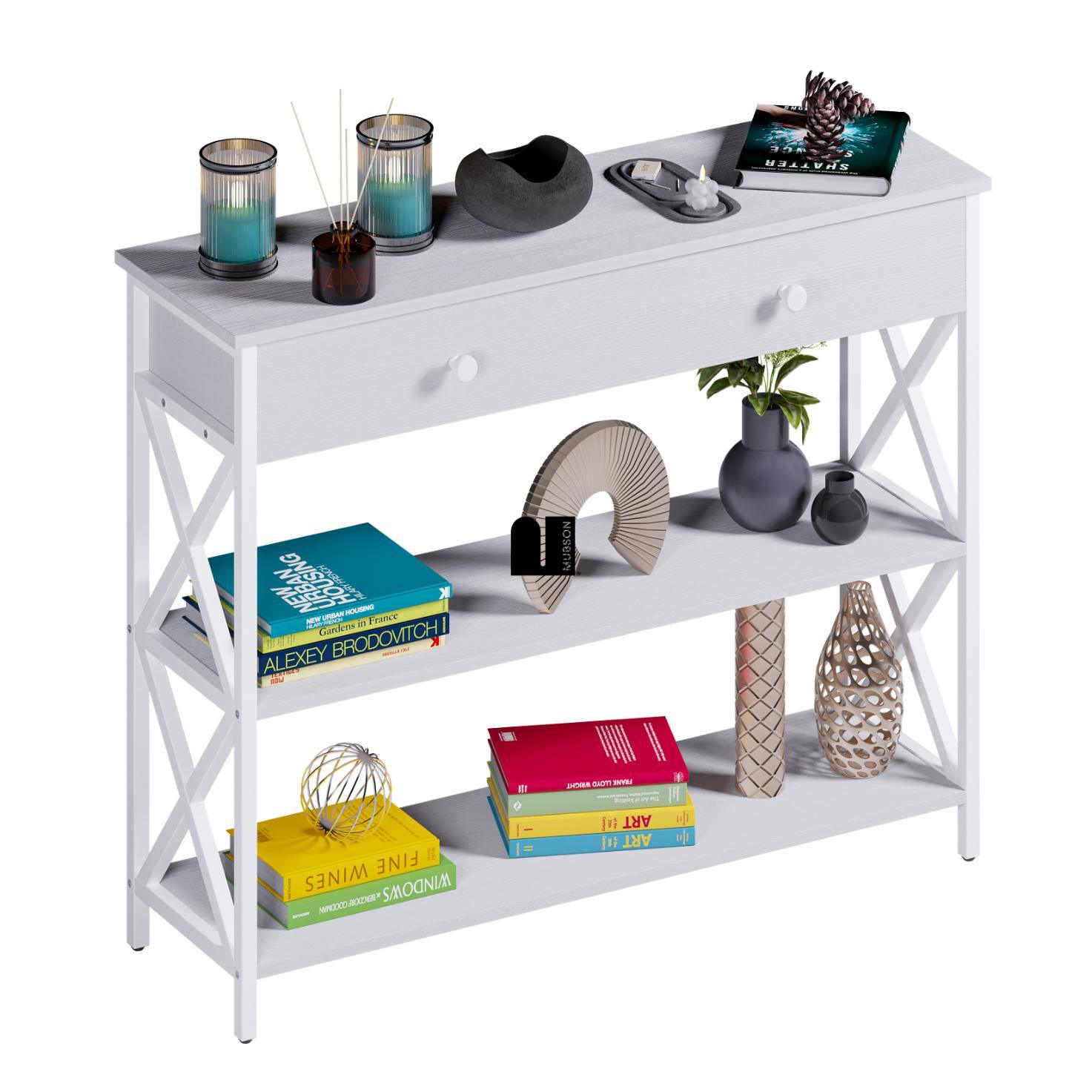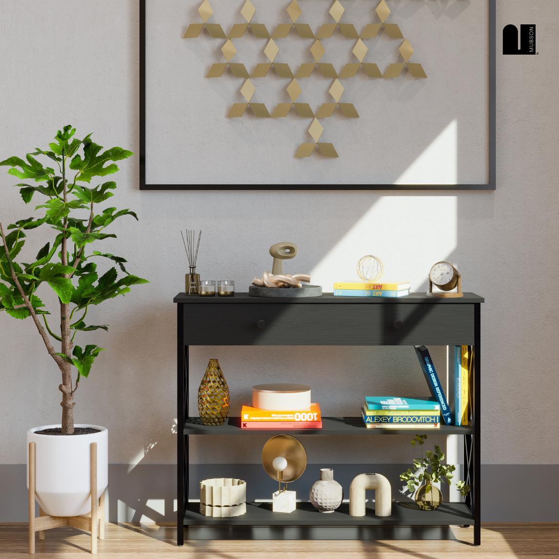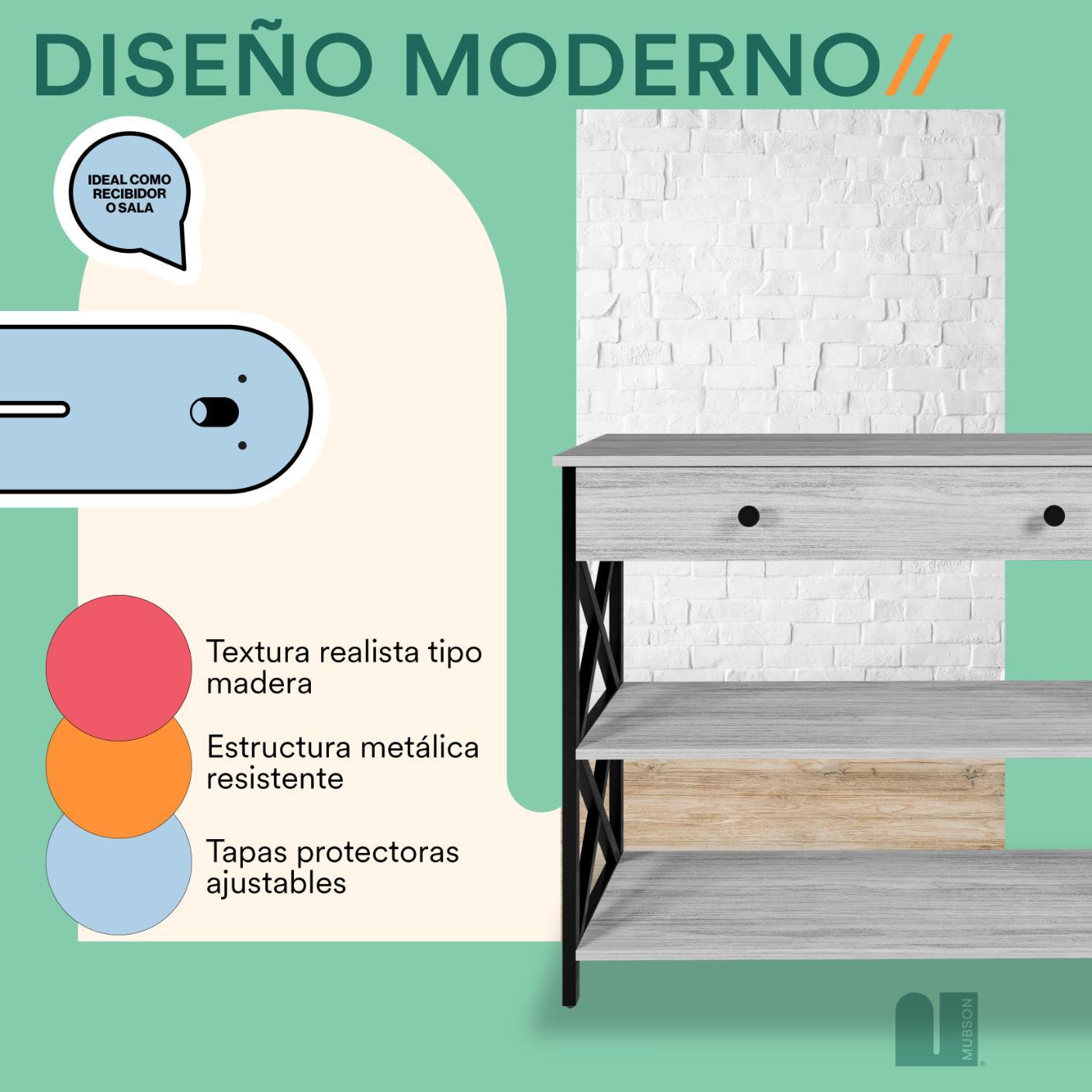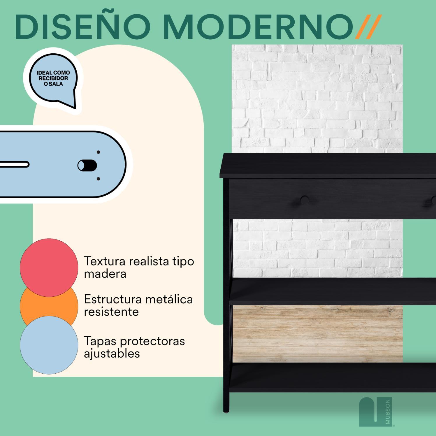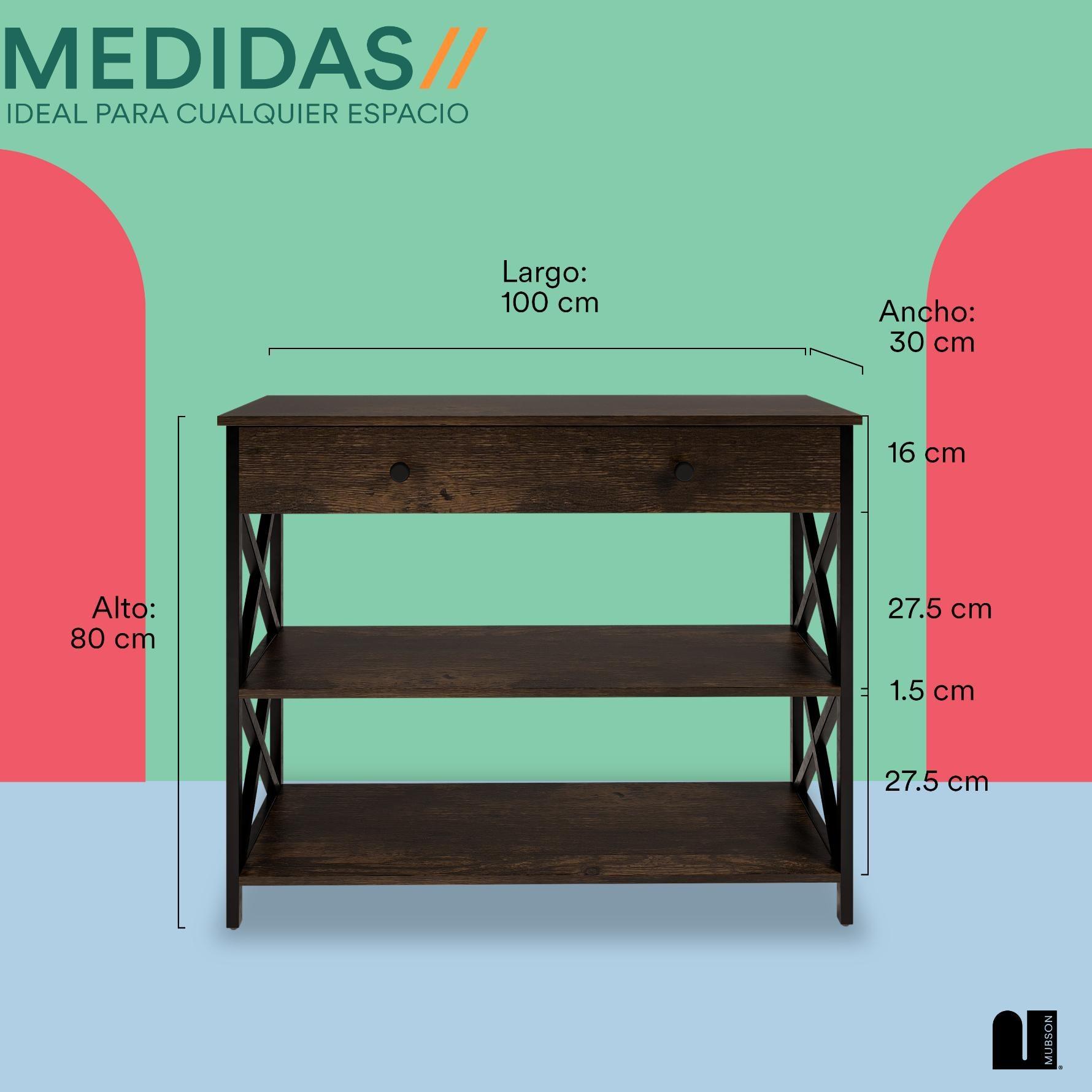 - 🛋️【Ideal para Recámara, Sala, Comedor y Pasillos de tu Hogar】Bufetera con Cajon y Triple repisa perfecta para colocar todo tipo de decoración como plantas, portarretratos, libros y más. (2 Repisas con un Largo de 102 cm x 30 cm de Ancho)