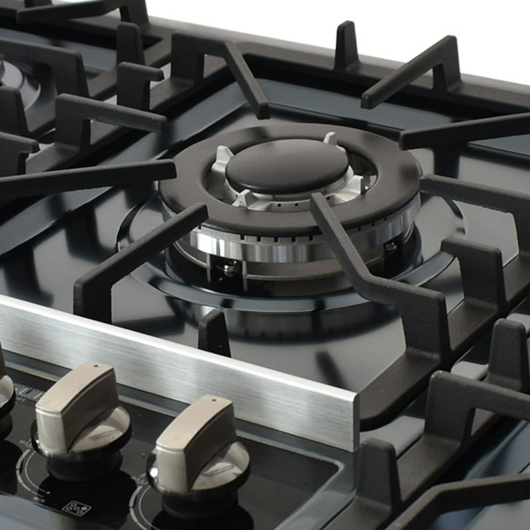 • Cubierta de acero inoxidable negro con encendido electrónico.