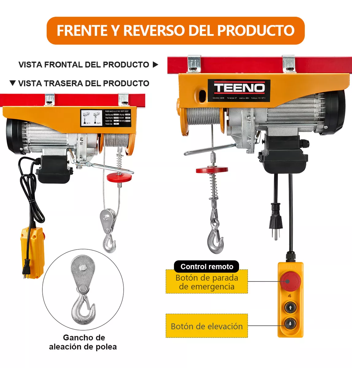 Polipasto Eléctrico Teeno De Carga De 600 Kilos, 20 M, 110v