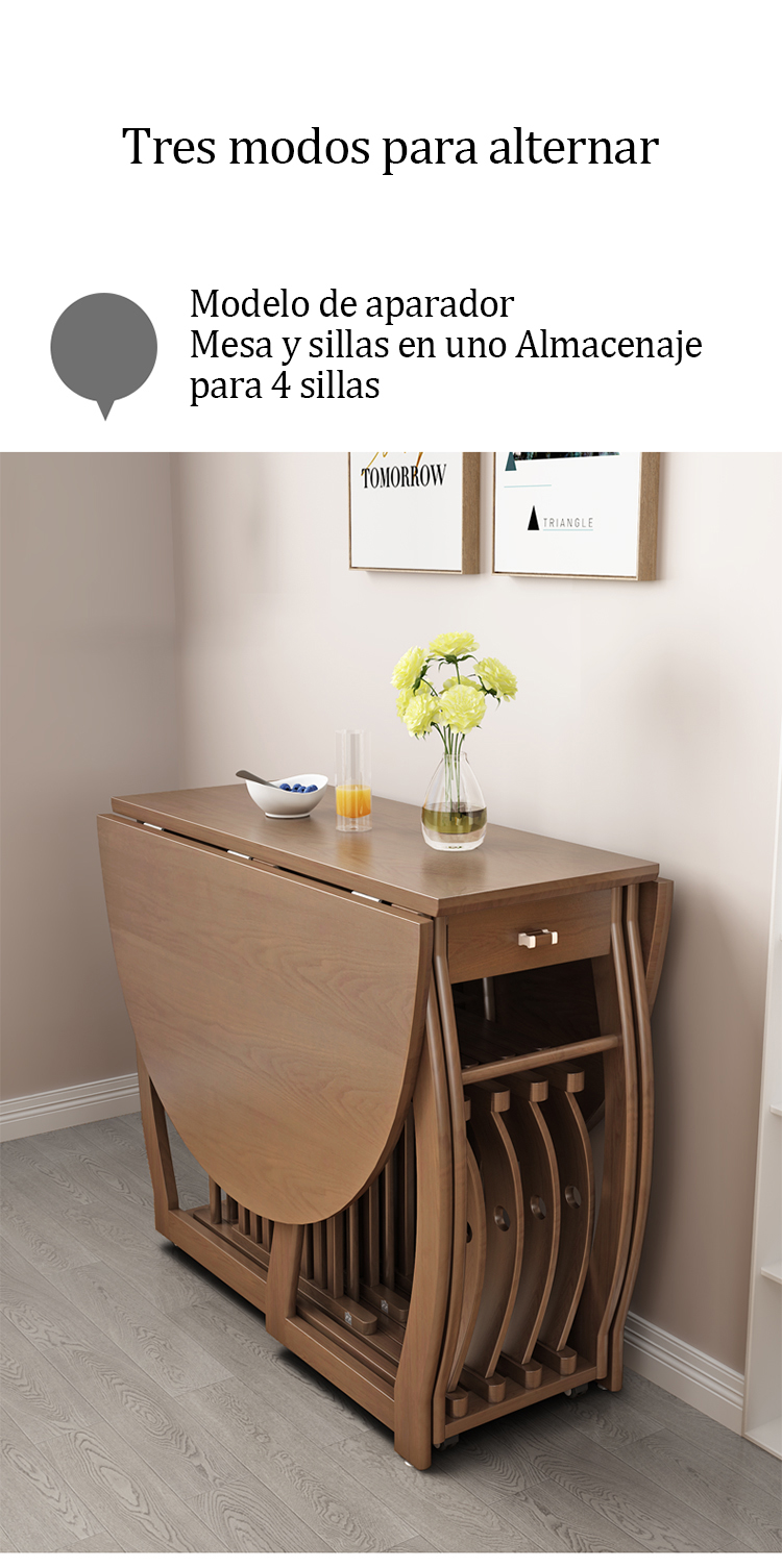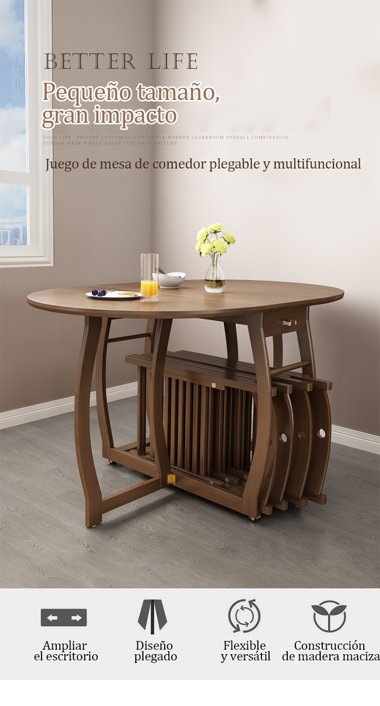 Mesa de comedor plegable Mesa de comedor pequeña Mesa de comedor redonda telescópica y deformable Juego de sillas y mesa de comedor para ahorrar espacio