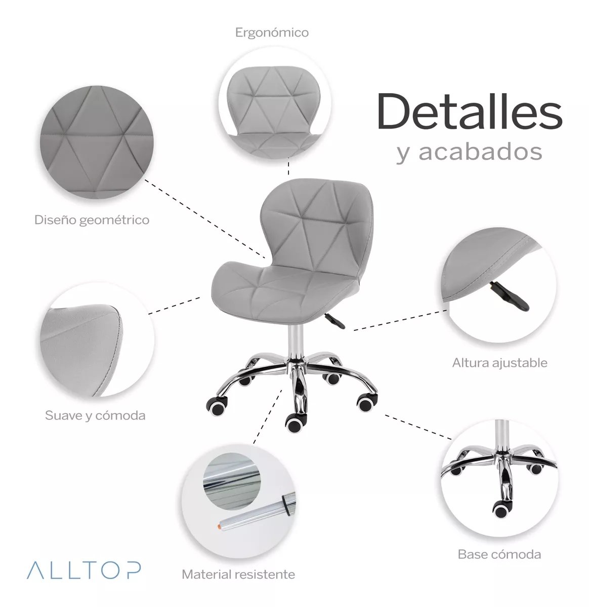Las ruedas te van a permitir moverte y limpiar fácilmente tu espacio. Podrás trasladarla sin dificultad cuando lo necesites. Además, al ser giratoria te permitirá rotar el asiento 360º sin la necesidad de cambiar de posición o moverte del lugar en donde estás.