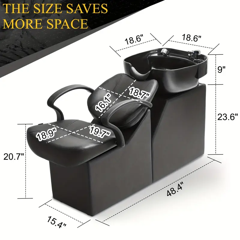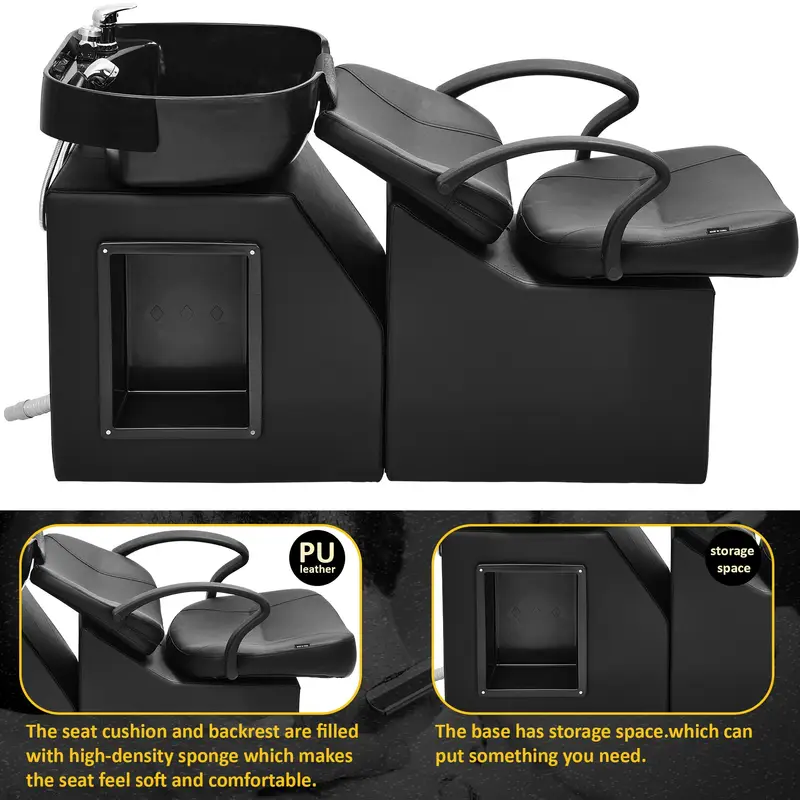 Silla de Barbero con Lavabo de Plástico ABS para Lavado de Cabello con Unidad de Fregadero para Estación de Equipo de Spa y Salón