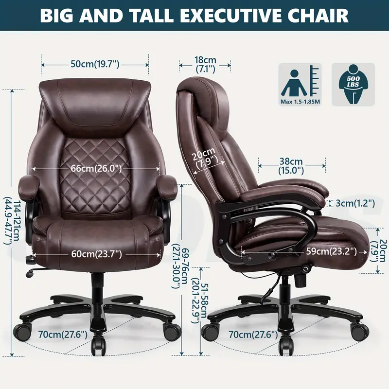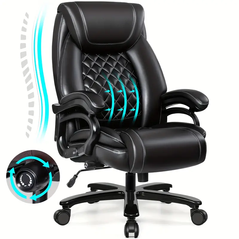 Silla ergonómica     de 500   para  , silla   y   para  , silla ejecutiva para   de cuero PU con asiento ancho, soporte lumbar ajustable, silla de computadora mecedora de respaldo   para   pesadas. detalles 7