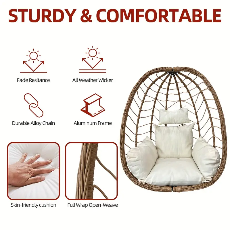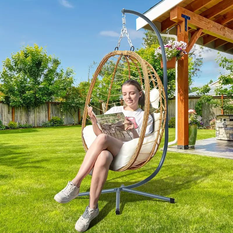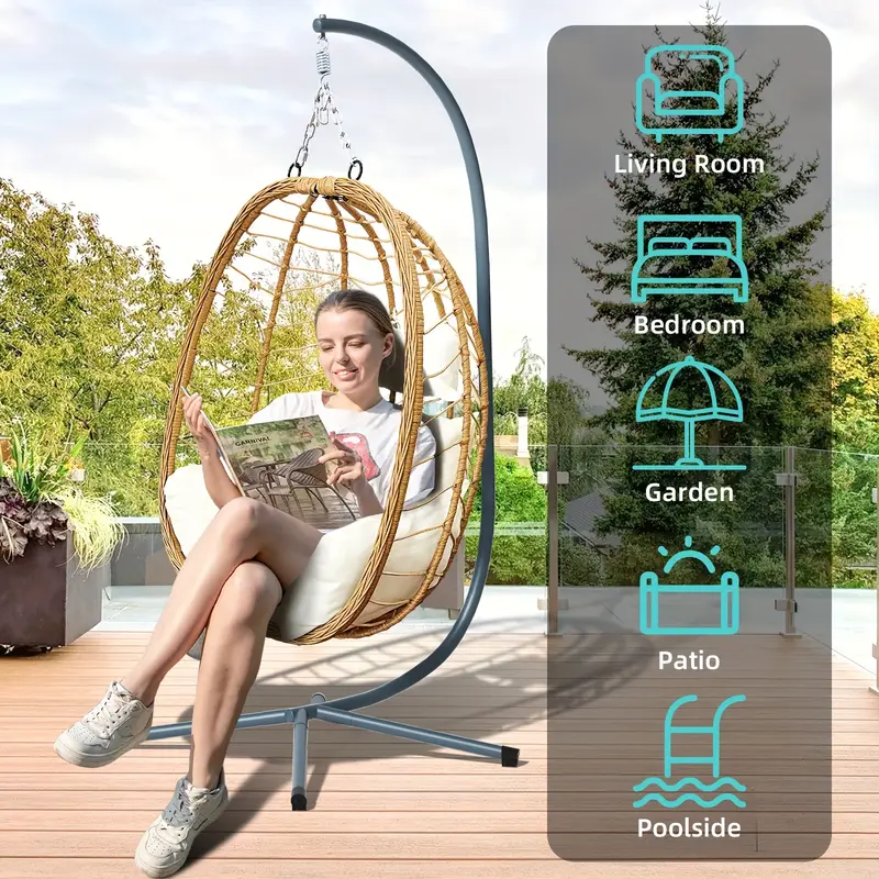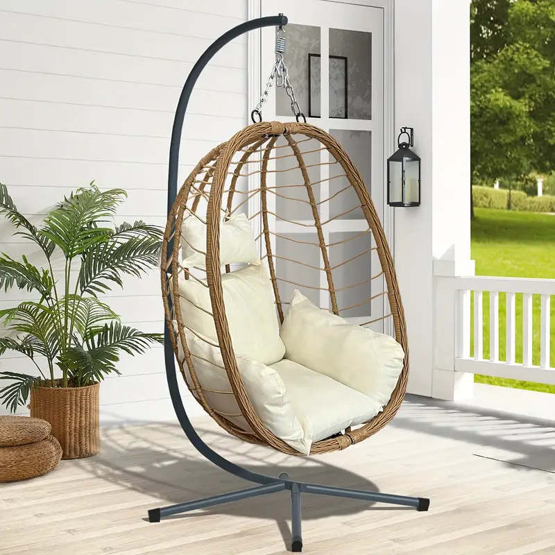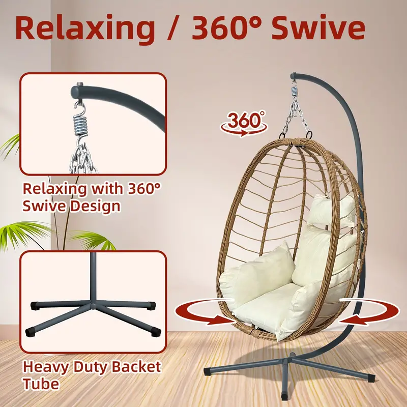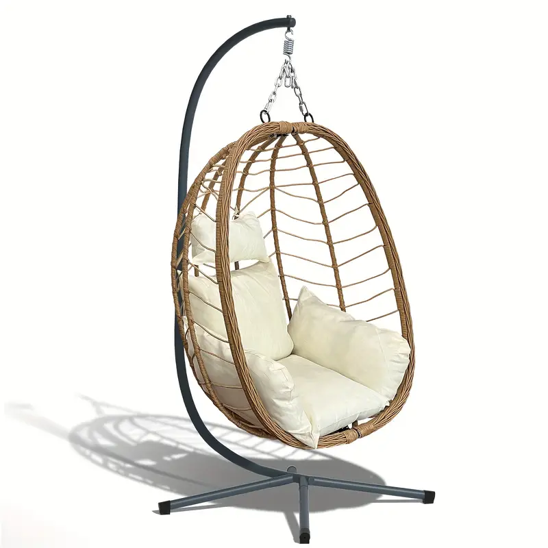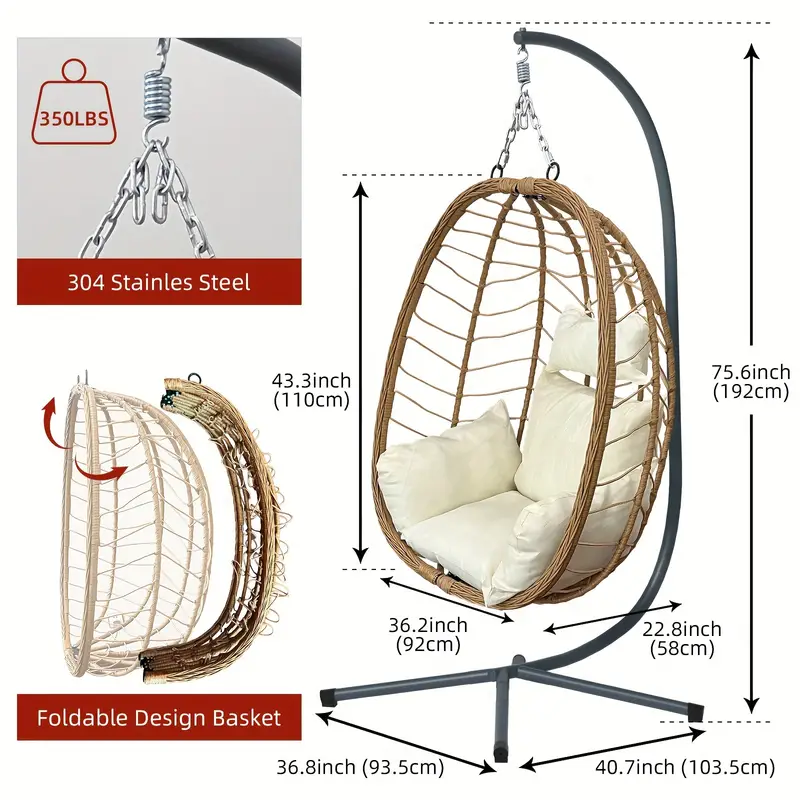 Silla Huevo con Soporte Plegable para Exteriores Patio Columpio Colgante de Mimbre Sillas 350LBS Capacidad Para Patio, Porche, Balcón, Dormitorio