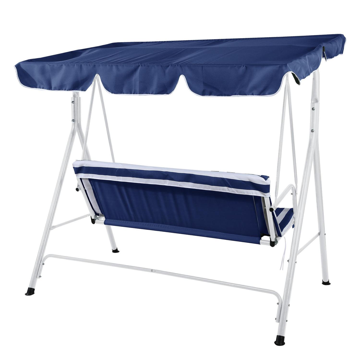 El sillón columpio para 3 personas con rayas azules es una excelente opción para disfrutar del aire libre y relajarse en el jardín, terraza o patio. Este cómodo columpio ofrece espacio para tres personas y presenta un diseño con rayas azules que le da un aspecto atractivo y fresco. Con un ancho de 170 cm, puede acomodar cómodamente a tres personas.