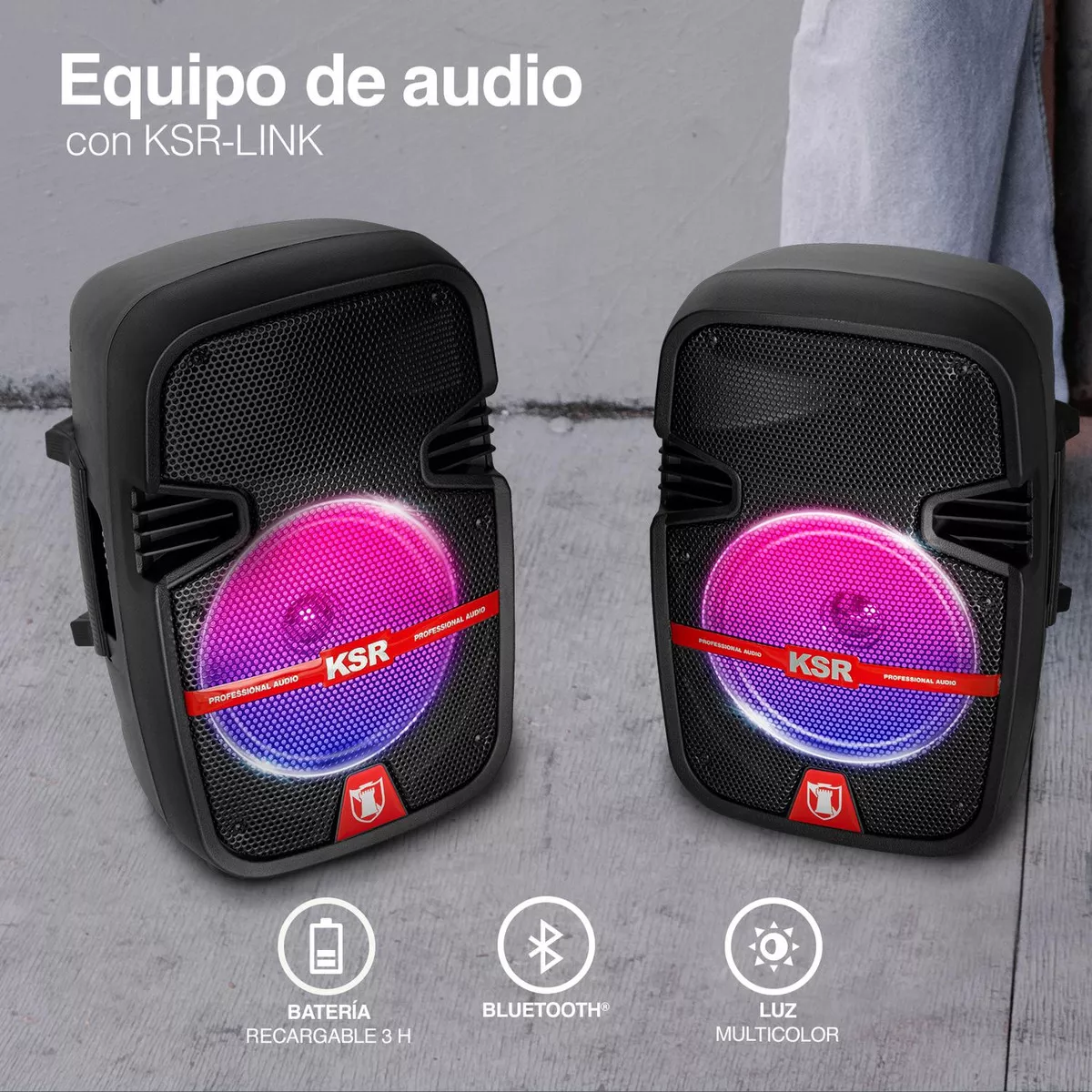 Kit de bafles de 8 pulgadas con potencia de 6,200 PMPO cada una / 25 + 25 W RMS. 2 bocinas activas.