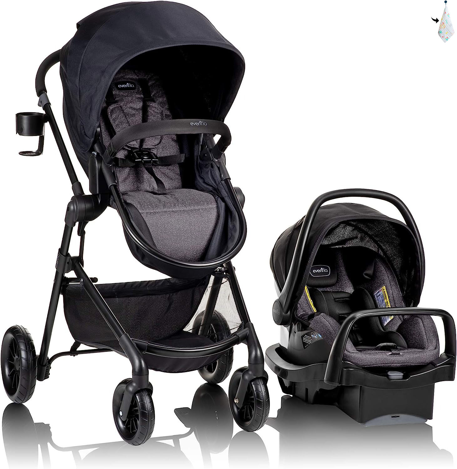 Sistema de viaje modular Evenflo Pivot de calidad ultraalta, 3-6 meses-----Toallitas bucales para bebés