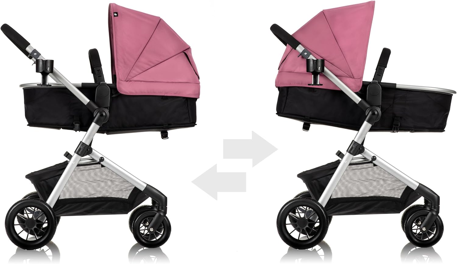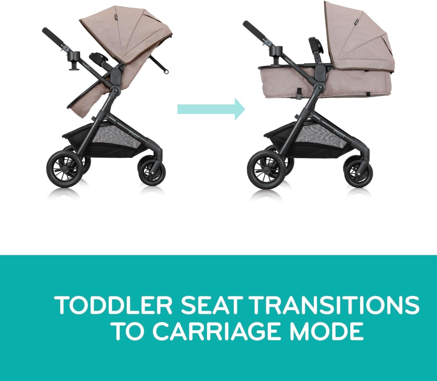 • La evenflo Pivot es una elegante sistema de viaje con tres modos de reversible grande, logotipo toldo proporciona cobertura total