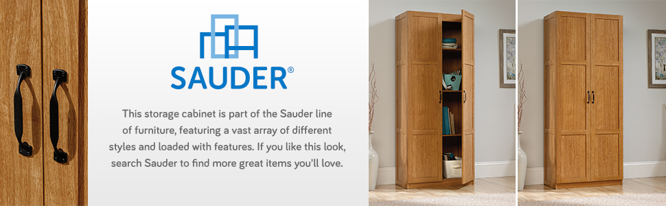 Sauder - Armarios de Almacenamiento Diversos para despensa, Longitud: 75,2 cm x Ancho: 40,9 cm x Alto: 180,6 cm, Acabado de Roble Highland