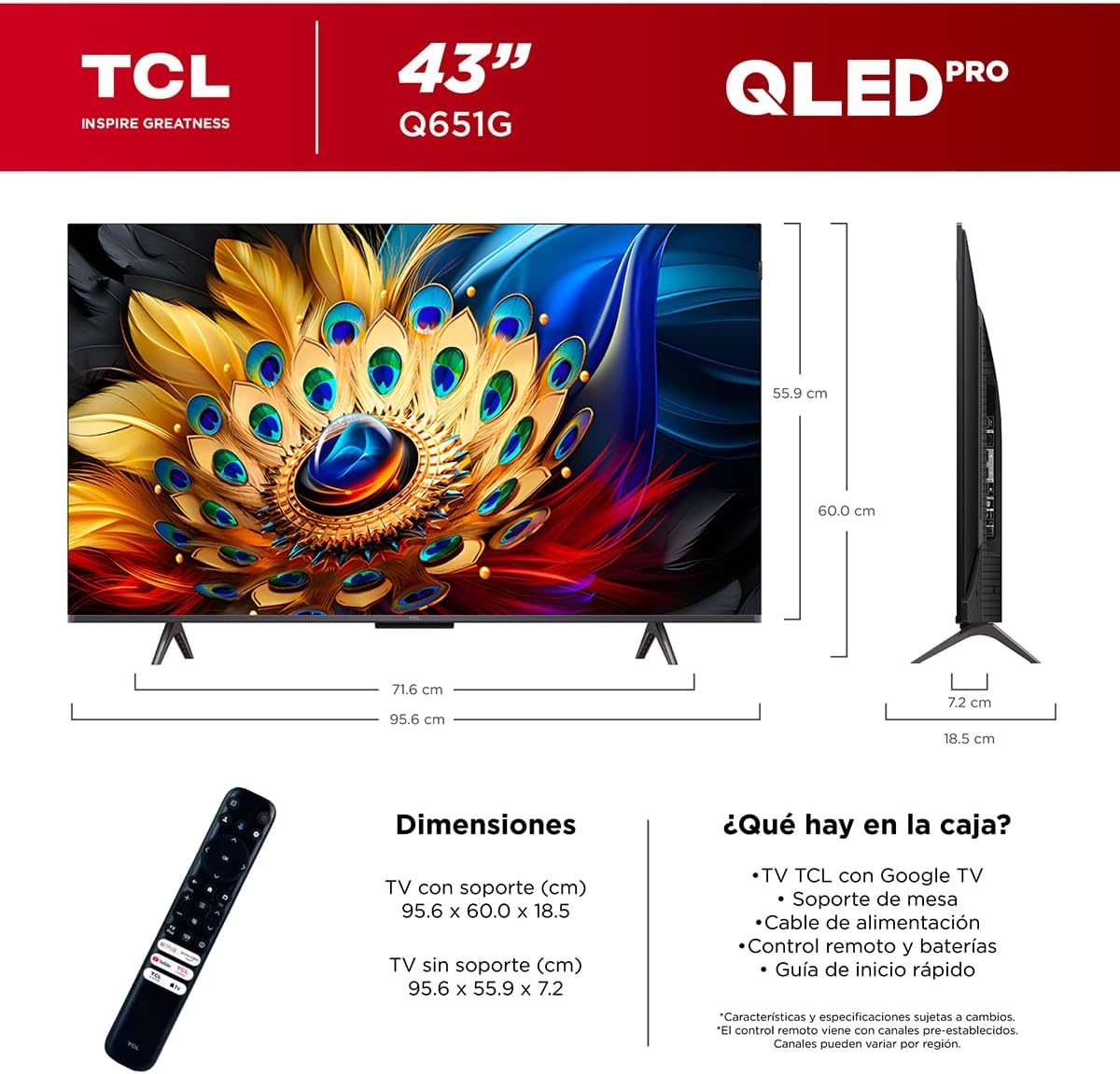 | Componentes incluidos | Control remoto |