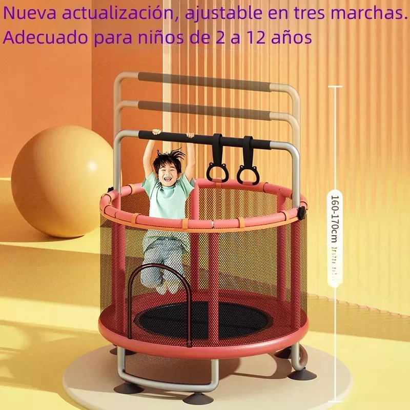 Incluye tres niveles de diseño de barra horizontal de altura ajustable, se puede ajustar entre 150 cm y 170 cm, ayuda a los niños a saltar, columpio, boxeo, escalada y otras actividades con seguridad, de modo que los niños pueden jugar en el trampolín con tranquilidad. Ideal para que los niños hagan ejercicio y se liberen de la tentación de la electrónica.