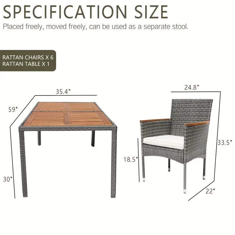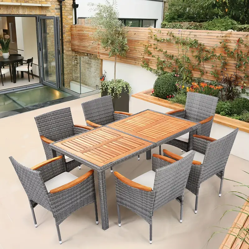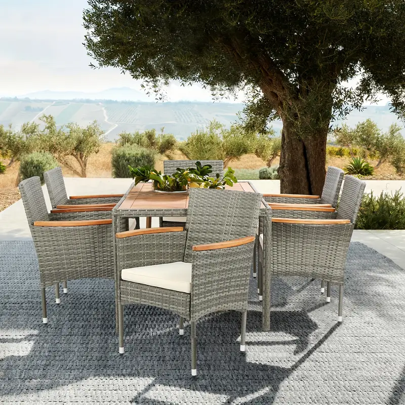 7 Piezas Juego de Mesa y Sillas de Patio al Aire Libre Juegos de Comedor de Patio Juego de Muebles de Exterior para Patio Jardín Exterior