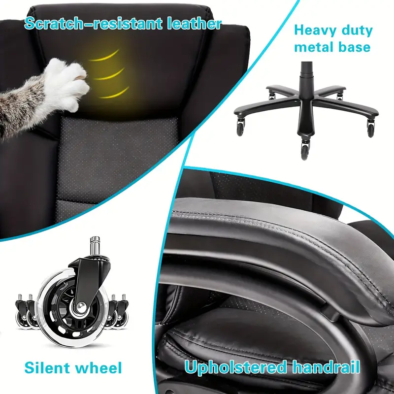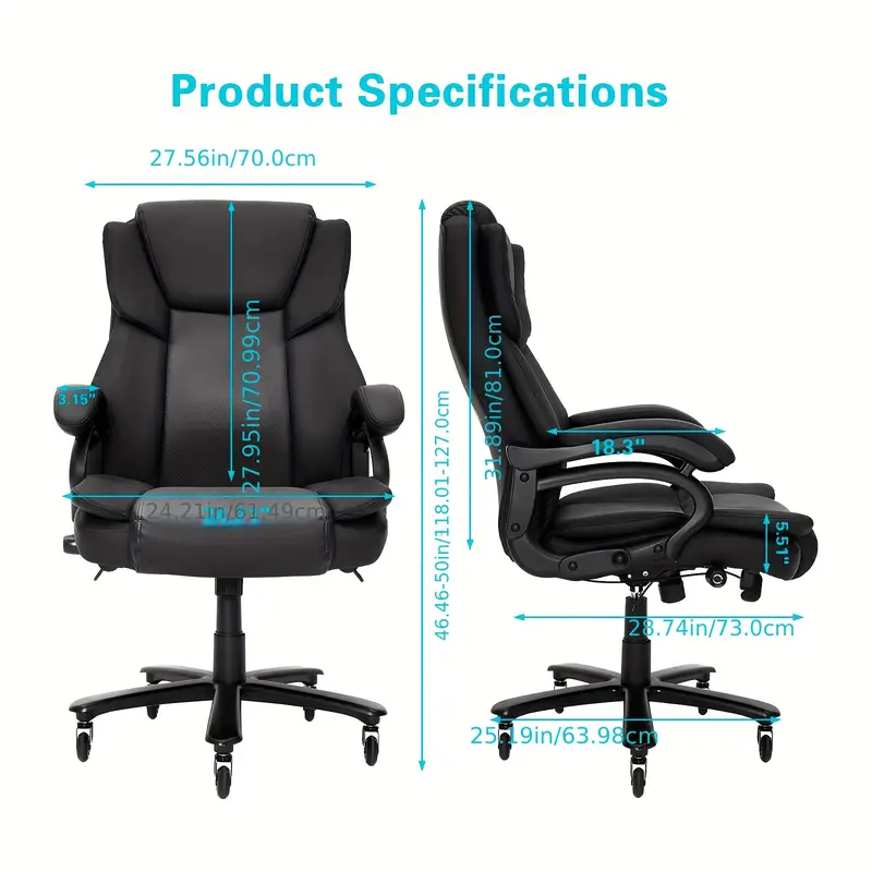 Almacén localSilla de oficina grande y alta, capacidad de 500 libras Silla de oficina de alta resistencia para personas pesadas, silla de oficina ejecutiva con respaldo alto con soporte lumbar ajustable, rueda de goma silenciosa, acolchado grueso