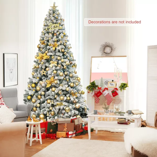 Árbol de Navidad artificial con bisagras y nieve de 9 pies Costway, metal apagado