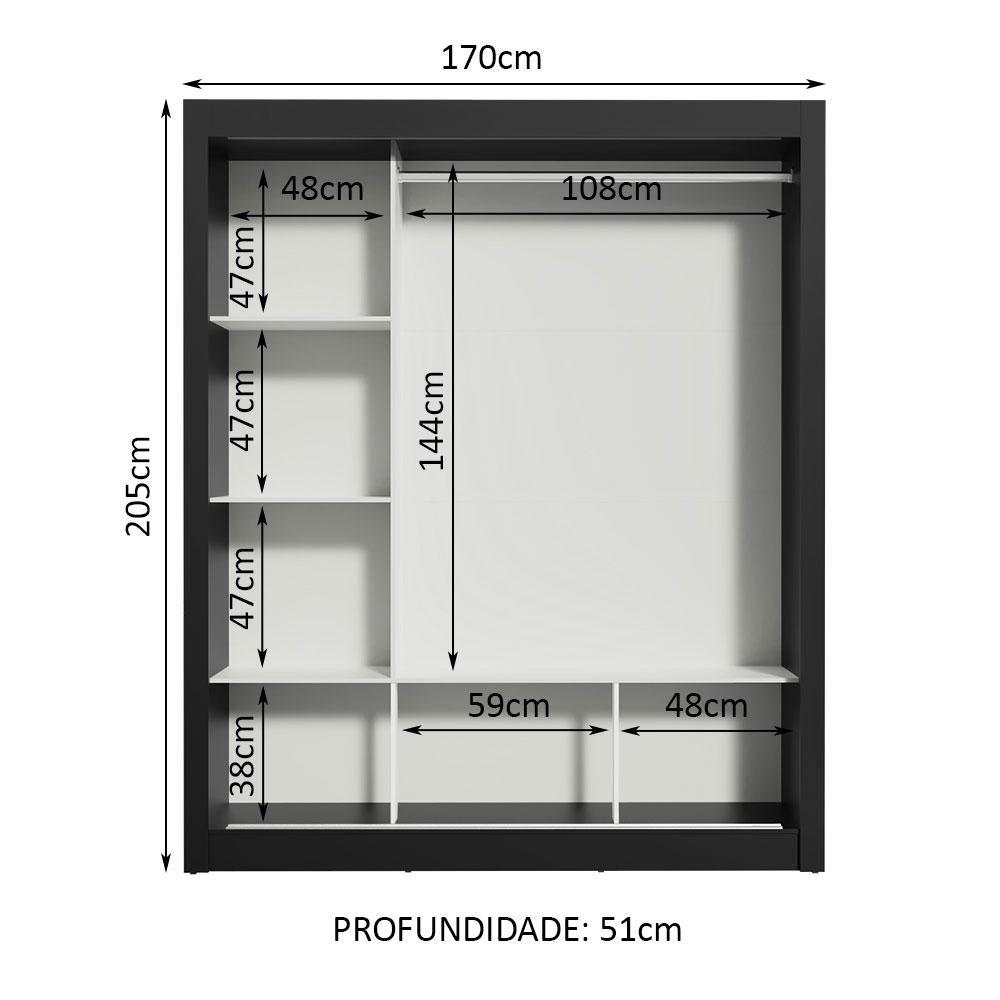 Medidas totais: 205 cm de altura x 170 cm de largura x 51 cm de profundidade.