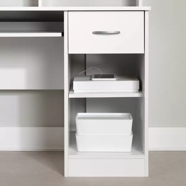 South Shore is proud to stand behind this office desk - modern design - keyboard tray and one drawer with an exclusive 5-year limited guarantee. Shop with confidence knowing your purchase is always covered. All our products meets or exceeds North American safety standards and our packaging are tested and certified to reduce the risk of damage during shipment. This item is shipped in 1 box, make sure to have a friend with you. Assembly is required by 2 adults and tools are not included. If you have questions regarding this product or need assistance do not hesitate to contact South Shore Furniture 7 days support. You can reach customer support by phone at 1.800.290.0465 or you may chat with an agent live at: www.southshorefurniture.com. This product is made in North America with laminated particleboard. Accessories not included.