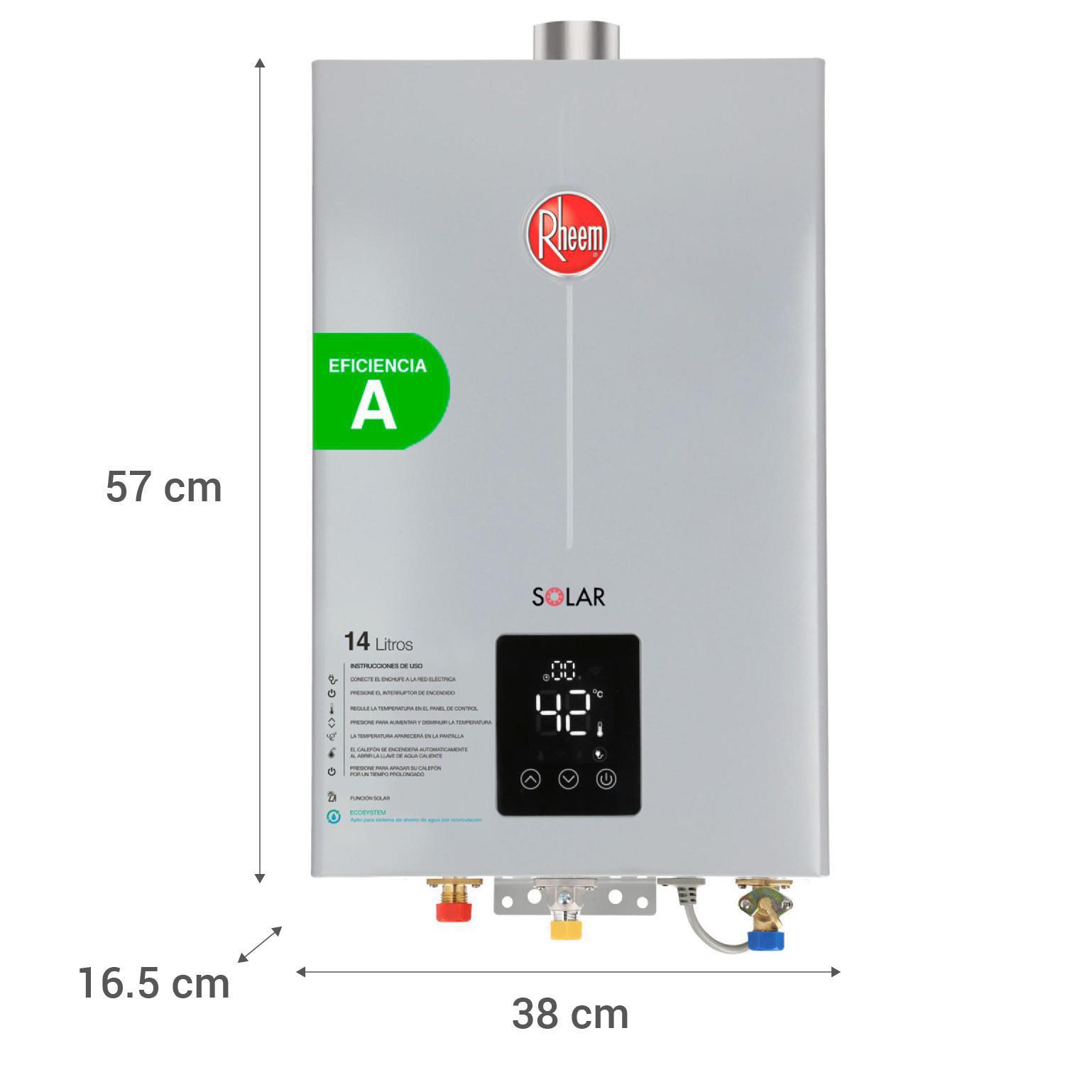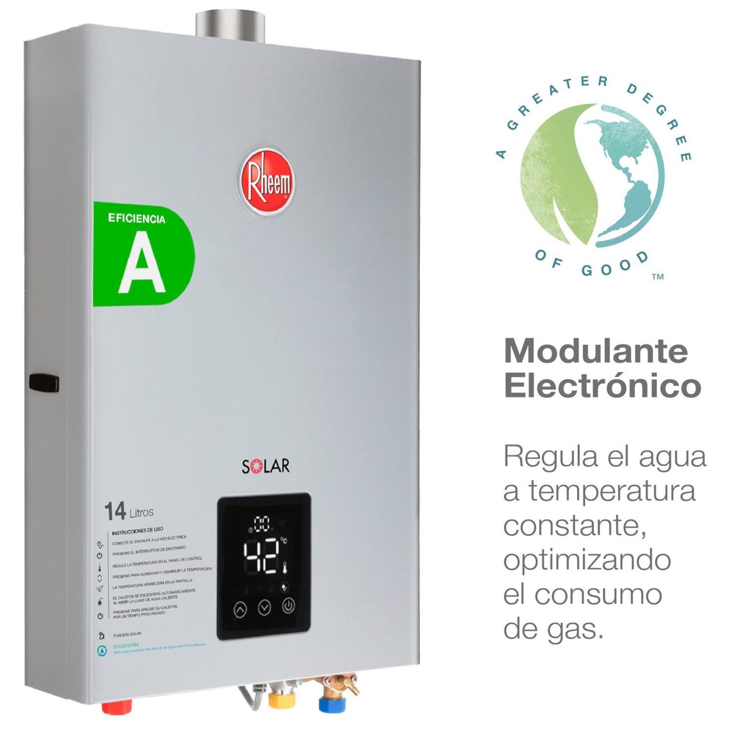 Dale a tu hogar el confort que se merece con el calefont digital Rheem de tiro forzado, con una capacidad de 14 litros y tecnología ionizada. Disfruta de agua caliente a la temperatura perfecta, gracias a su sistema modulante que regula el paso de gas y mantiene la temperatura constante, ahorrando en tu consumo. Su panel digital te permite seleccionar fácilmente la temperatura deseada, y su diseño moderno y eficiente en color gris se integrará perfectamente a tu baño. Wika y ¡Olvídate de los cambios bruscos de temperatura y disfruta de duchas placenteras!