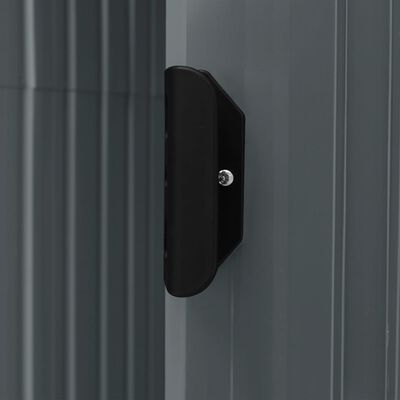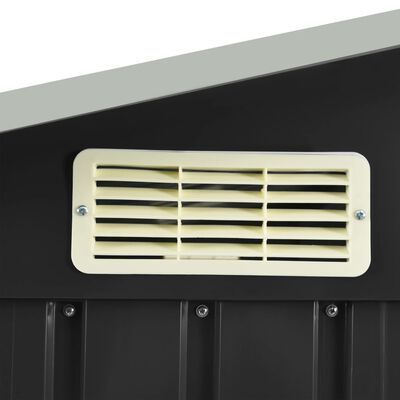 Este almacén está fabricado en hierro galvanizado, por lo que es estable y de fácil mantenimiento. La caseta de jardín tiene aberturas en la parte delantera y wika trasera que garantizan una excelente ventilación. Una puerta corredera sencilla con una manija de plástico en el frente permite una fácil entrada y salida.