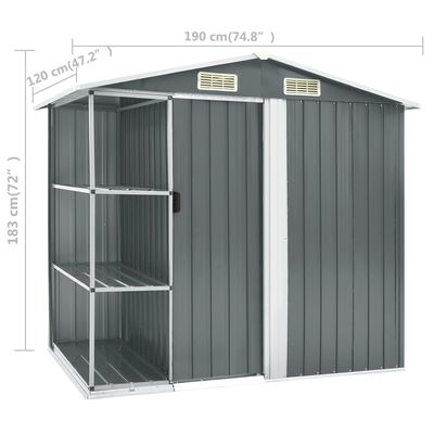 Cobertizo de jardín con estante gris 205x130x183 cm hierro