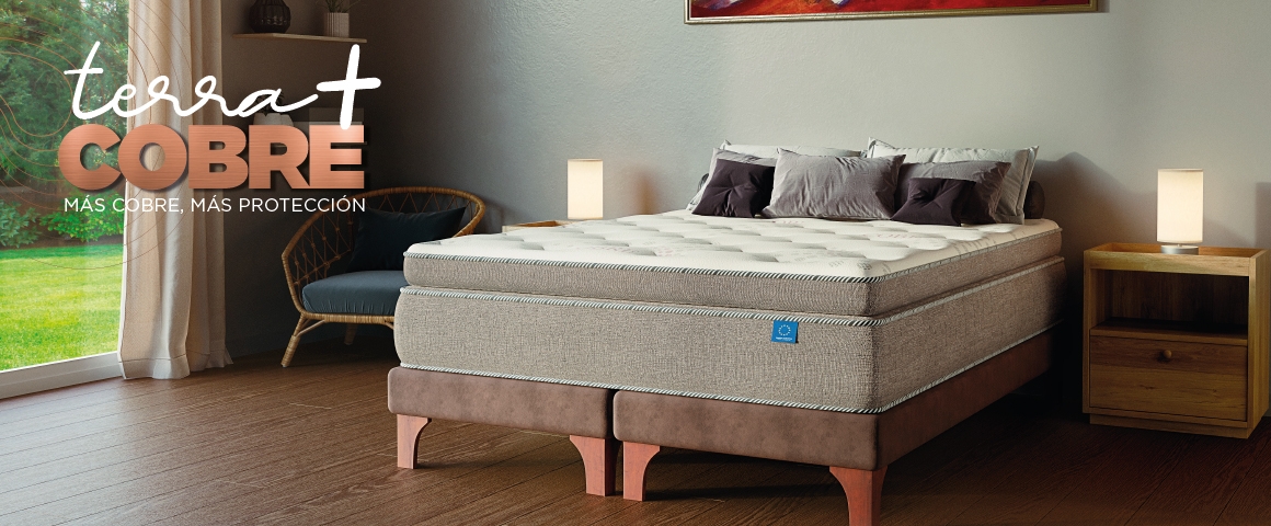 Descubre el colchón que te ofrece el doble de protección natural antibacterial y un descanso inigualable. El Colchón Terra Cobre Flex de 2 Plazas, disponible en Tienda Falabella online ofrece un descanso reparador.