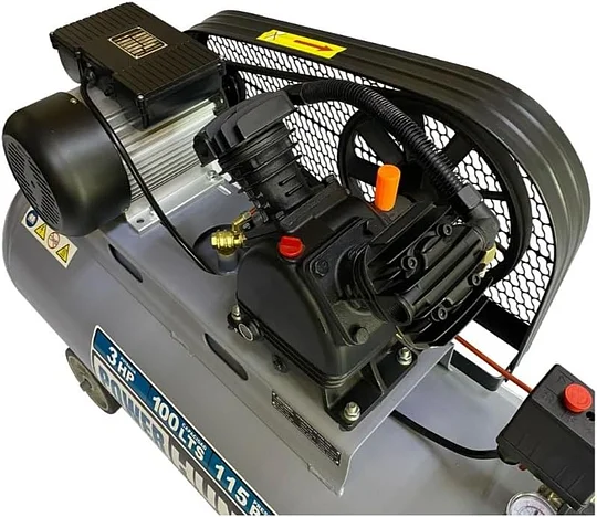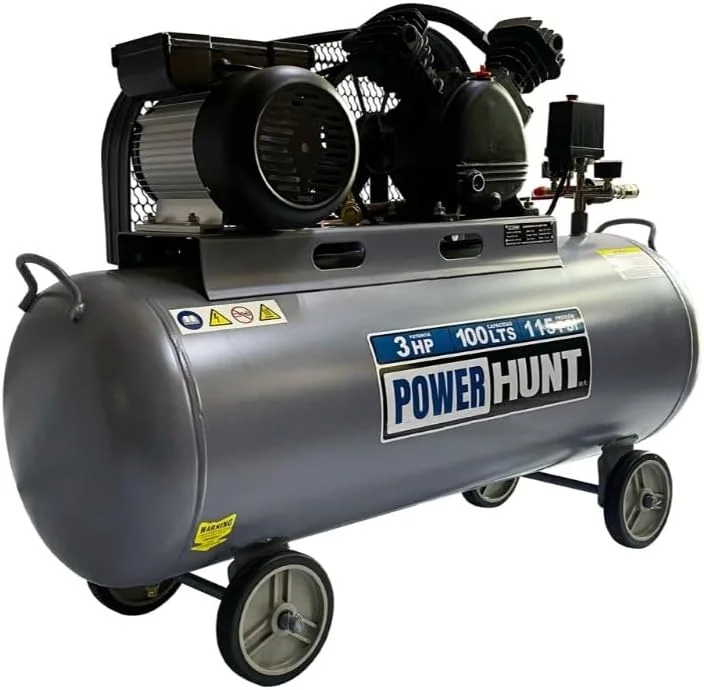- Compresor De Aire Eléctrico Portátil 100lts Power Hunt 3hp con banda y doble conexión rapida, presion de 8 bar/ 115 psi