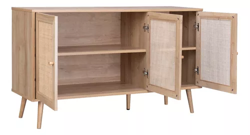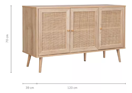 Credenza Bufetera Top Living Aparador 3 Puertas De Ratán Color Marrón