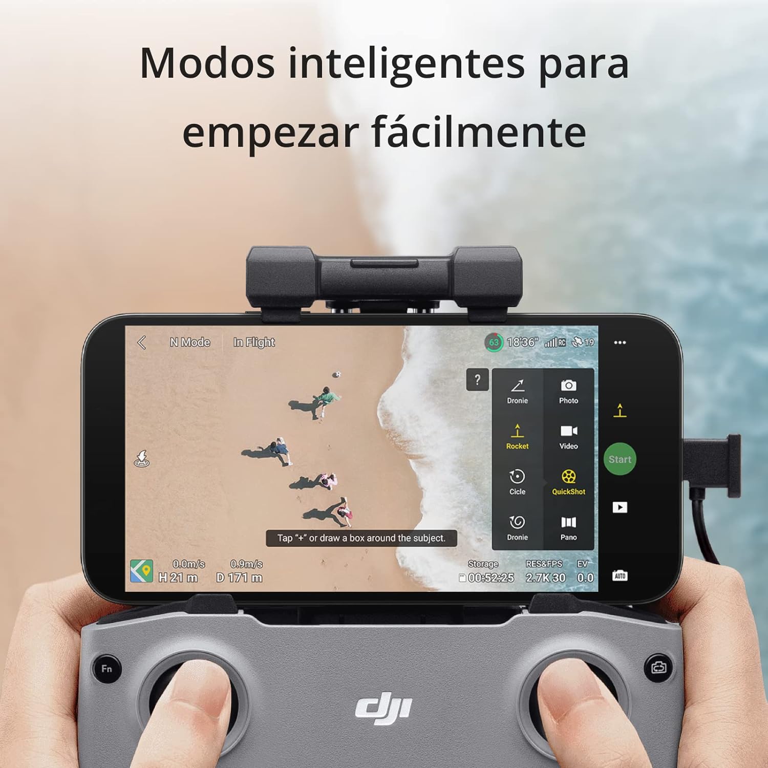 • Modos inteligentes - QuickShots y otras asombrosas funciones inteligentes están disponibles con solo unos toques para que tus vídeos aéreos parezcan grabados por un profesional.