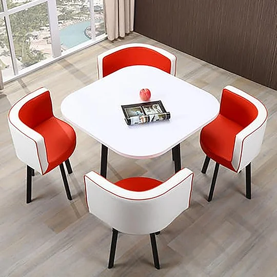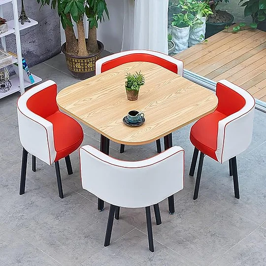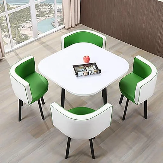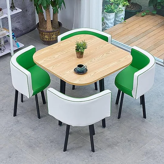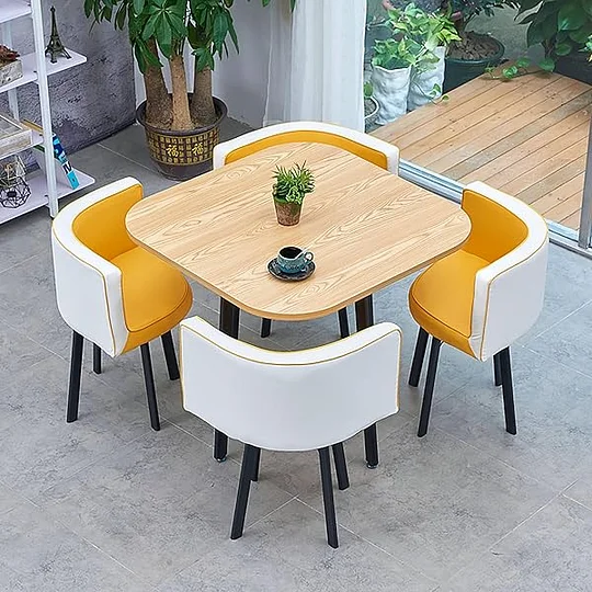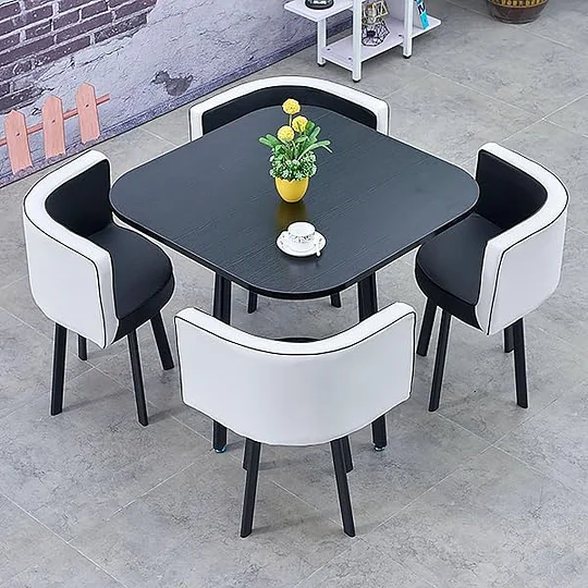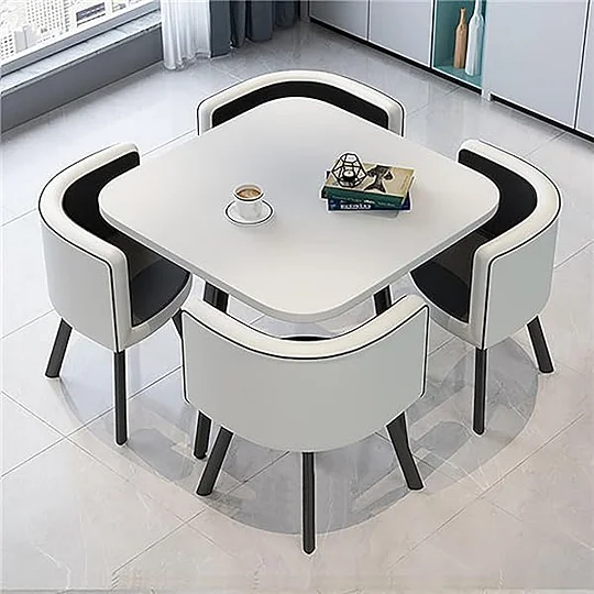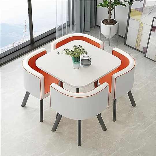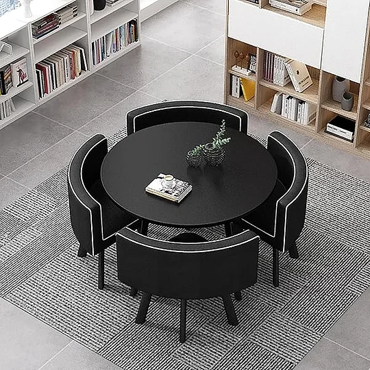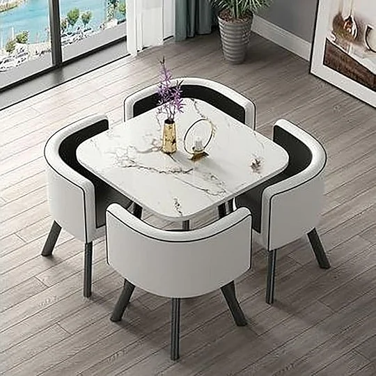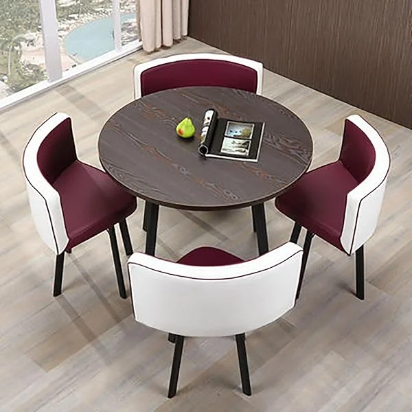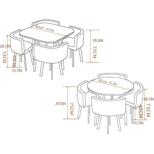 Aplicación versátil: la mesa redonda de mármol artificial maximiza el uso del espacio, aportando personalidad y encanto a cualquier habitación con su apariencia limpia y brillante. Adecuado for una variedad de entornos, como comedores, cocinas, salas de estar y oficinas, mejora la experiencia gastronómica, permitiendo a familiares y amigos disfrutar de hermosos momentos y apreciar la belleza de la vida juntos. Diseño que ahorra espacio: el sencillo escritorio de recepción y el juego de sillas no ocupan mucho espacio, lo que lo hace ideal for salas de reuniones pequeñas o áreas de recepción de invitados. Cuando no están en uso, los taburetes se pueden guardar debajo de la mesa, liberando espacio en la habitación y manteniendo la limpieza. Diseño ergonómico: la superficie del asiento está hecha de material PU de alta calidad, con respaldos y cojines envueltos en una esponja de alta densidad for un rebote excelente y duradero, adecuado for sentarse durante mucho tiempo. w99 El respaldo ligeramente inclinado se adapta al cuerpo humano, lo que permite una mejor relajación de la espalda. Materiales de alta calidad: la superficie de la mesa está fabricada con tableros ecológicos de grado E1, que ofrecen una superficie lisa y dura, inodora y fácil de limpiar. Su material robusto y práctico, junto con las esquinas redondeadas, minimiza las lesiones por colisión, garantizando la seguridad familiar en todo momento. Estructura de marco resistente: Cuenta con un marco de metal for mayor durabilidad, con un alto coeficiente de seguridad debido a las esquinas redondeadas de la mesa diseñadas for evitar colisiones. Las patas de la mesa están hechas de hierro espesado con pintura de alta temperatura y acabado arenado, lo que garantiza una longevidad sin envejecer. Las patas de las sillas vienen con almohadillas antideslizantes for evitar daños al suelo y ruidos.