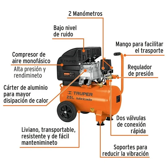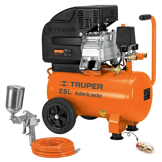 1 Kit, compresor 25 L, 3 HP, manguera de PVC y pistola, Truper