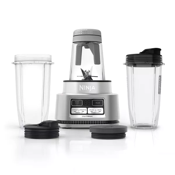 Ninja® Foodi® Smoothie Bowl Maker and Nutrient Extractor* with smartTORQUE™ is designed to blend and power through the thickest ingredients at high speed and never stall. One base with multi-functions. The Ninja® Nutrient Extraction* Cup and Spout Lid for smoothies and extractions. The Smoothie Bowl Maker with built-in tamper powers through frozen foods with less liquid for thick smoothie bowls and nut butters. 1200-peak-watt power-dense motor.