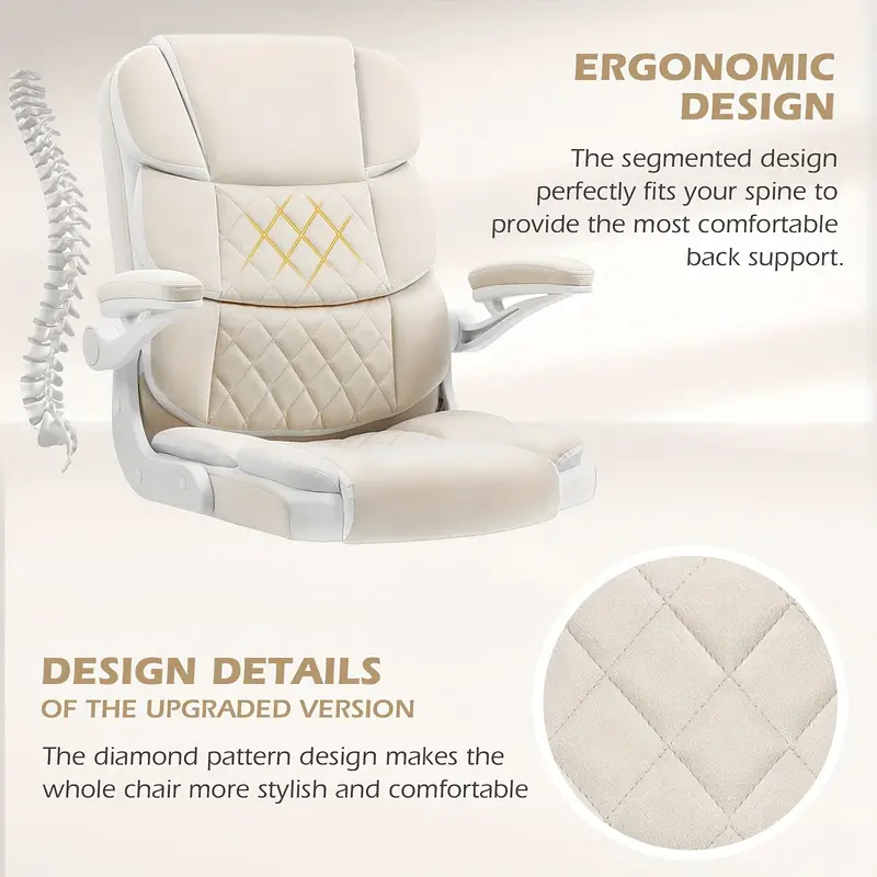 Silla de   Ergonómica de Terciopelo Beige con Soporte Lumbar, Apoyabrazos Ajustables y Base   - Silla de Escritorio Ejecutiva Cómoda para el Hogar, Estudio o Dormitorio detalles 2