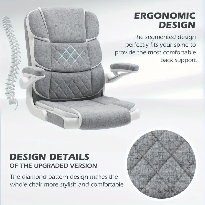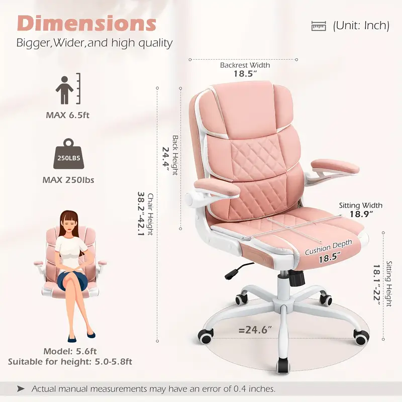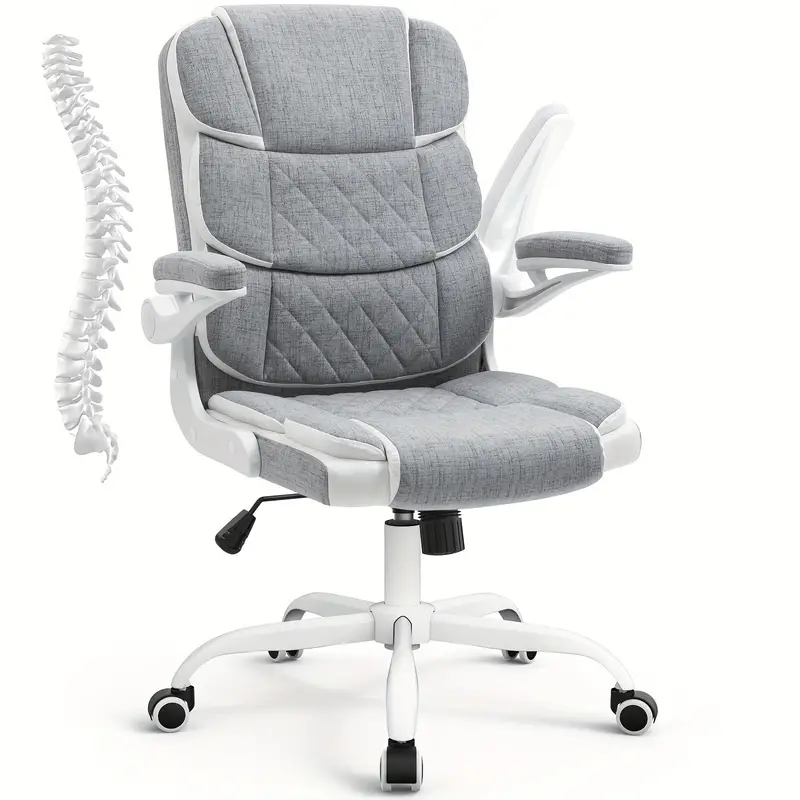 Silla de   Ergonómica de Terciopelo Beige con Soporte Lumbar, Apoyabrazos Ajustables y Base   - Silla de Escritorio Ejecutiva Cómoda para el Hogar, Estudio o Dormitorio detalles 5