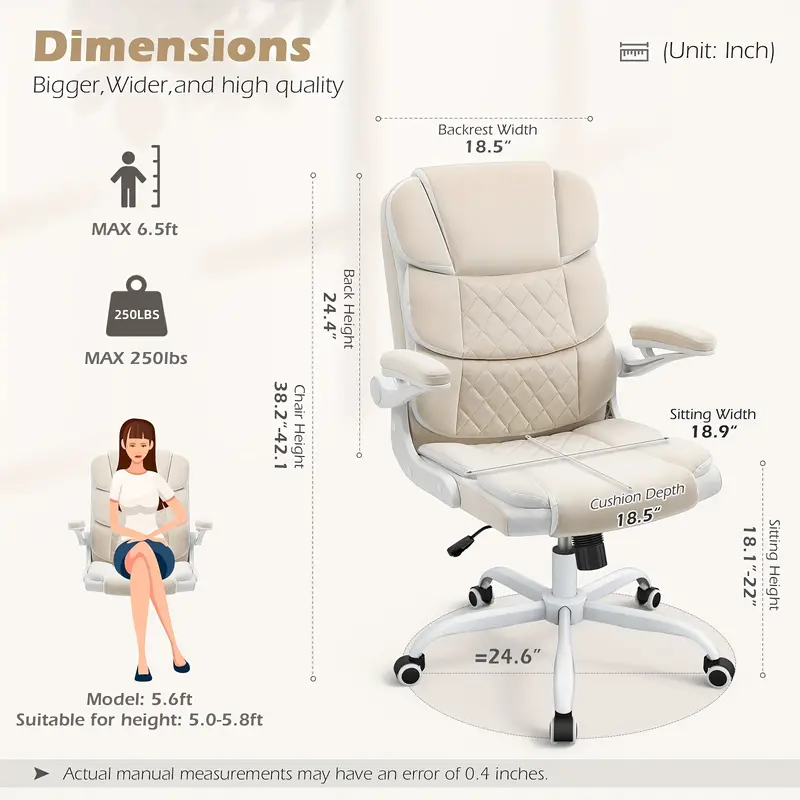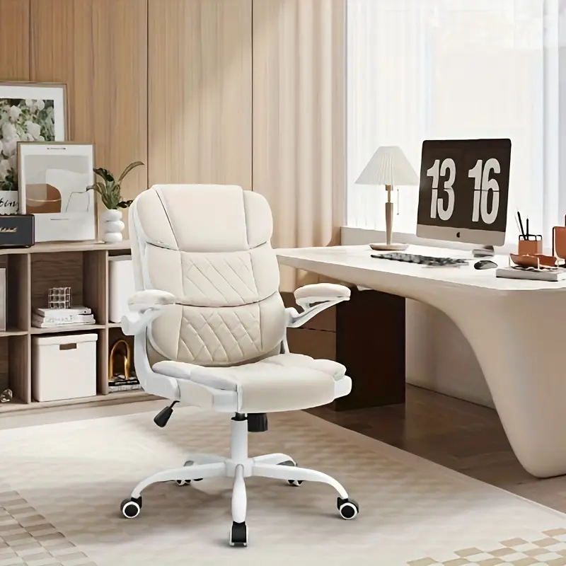 Silla de   Ergonómica de Terciopelo Beige con Soporte Lumbar, Apoyabrazos Ajustables y Base   - Silla de Escritorio Ejecutiva Cómoda para el Hogar, Estudio o Dormitorio detalles 0