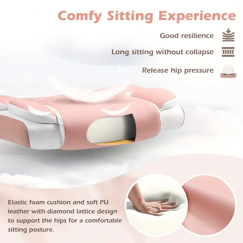 Silla de   Ergonómica de Terciopelo Beige con Soporte Lumbar, Apoyabrazos Ajustables y Base   - Silla de Escritorio Ejecutiva Cómoda para el Hogar, Estudio o Dormitorio detalles 4