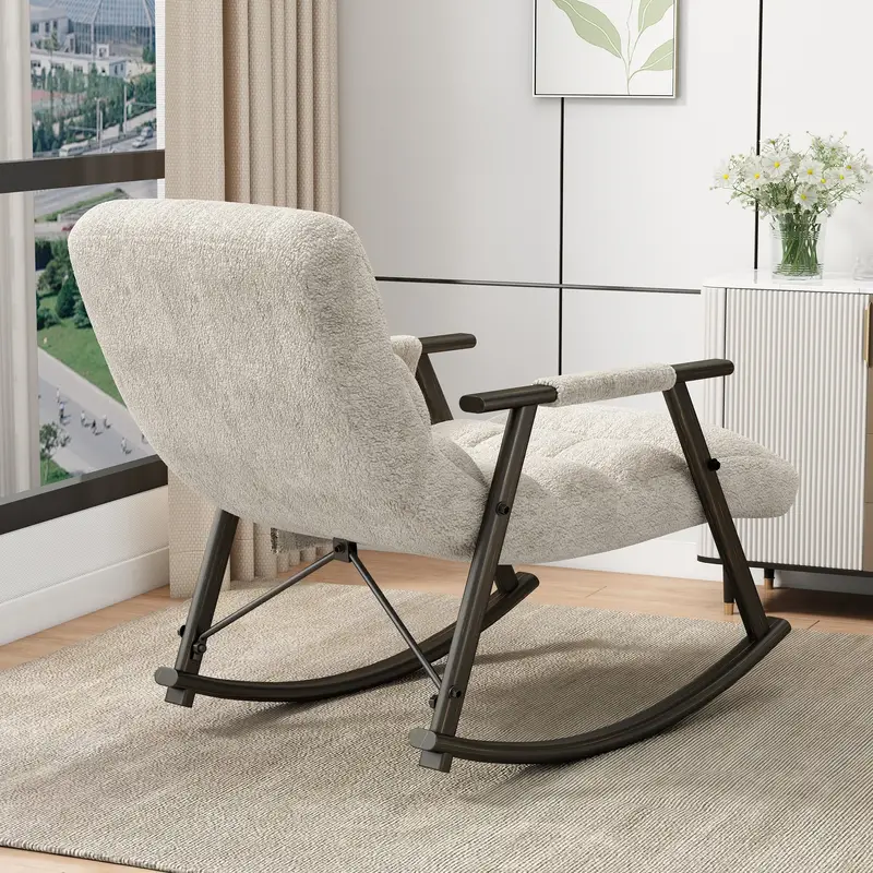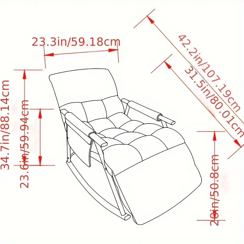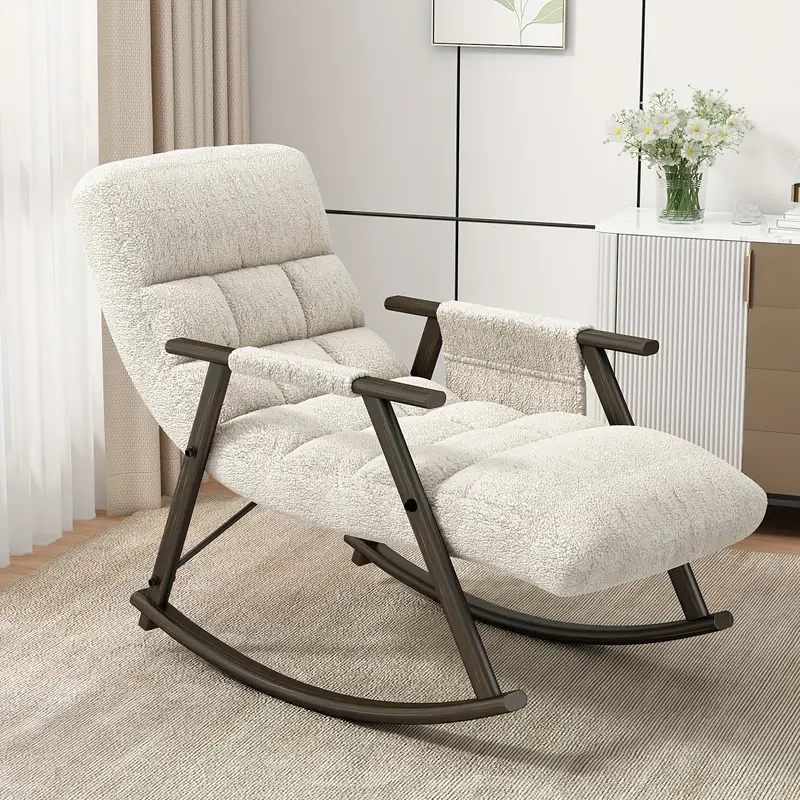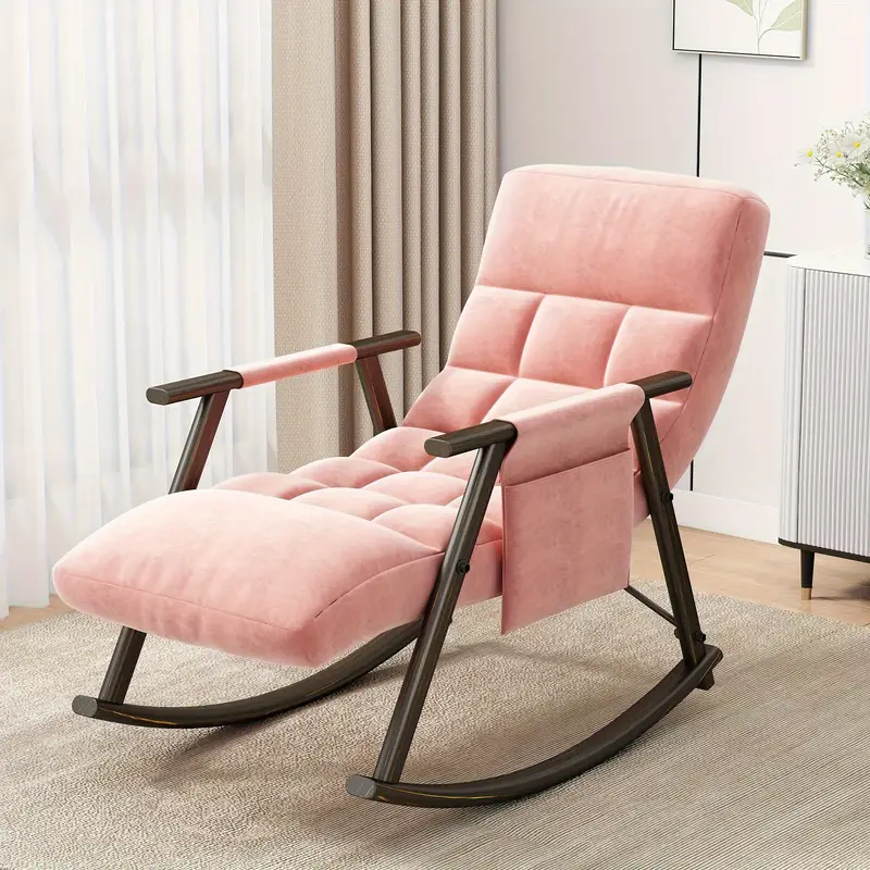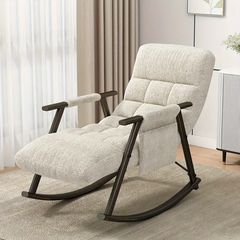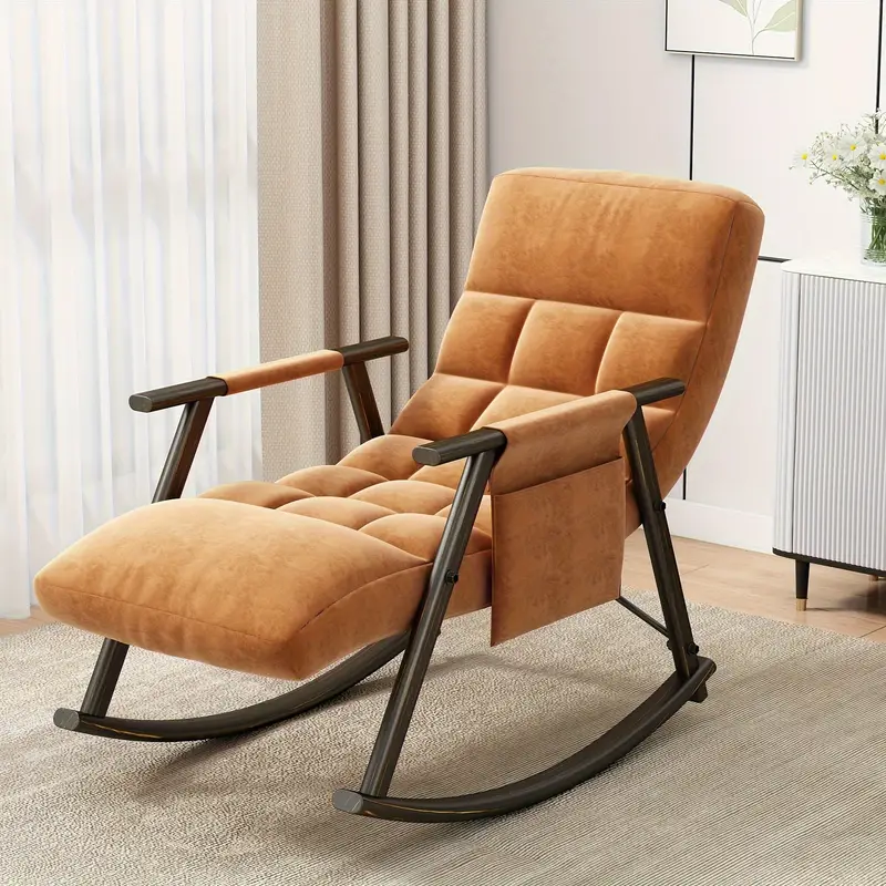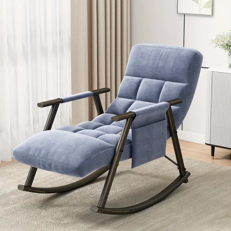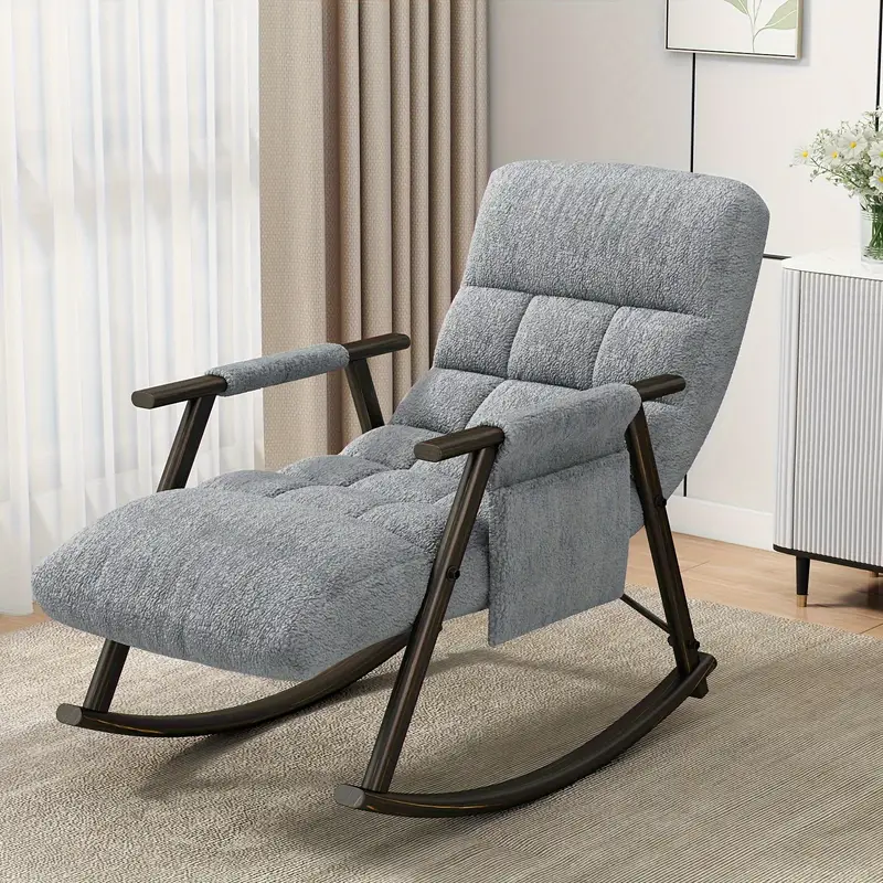 Silla mecedora casual tapizada, reclinable con respaldo alto ajustable y reposapiés