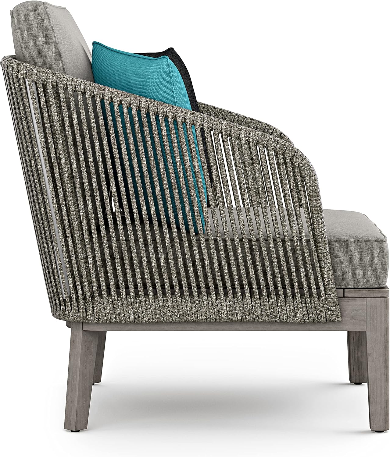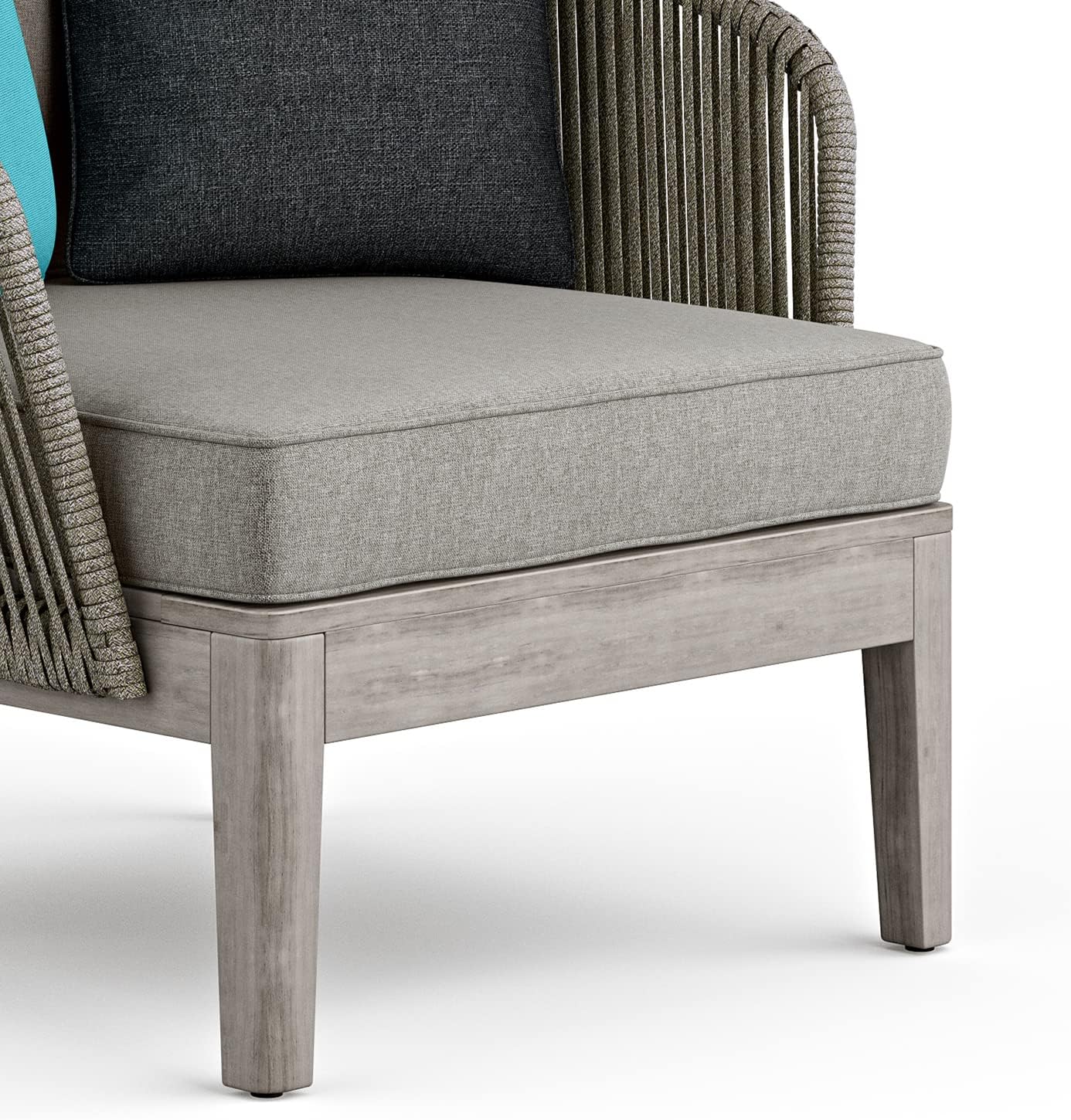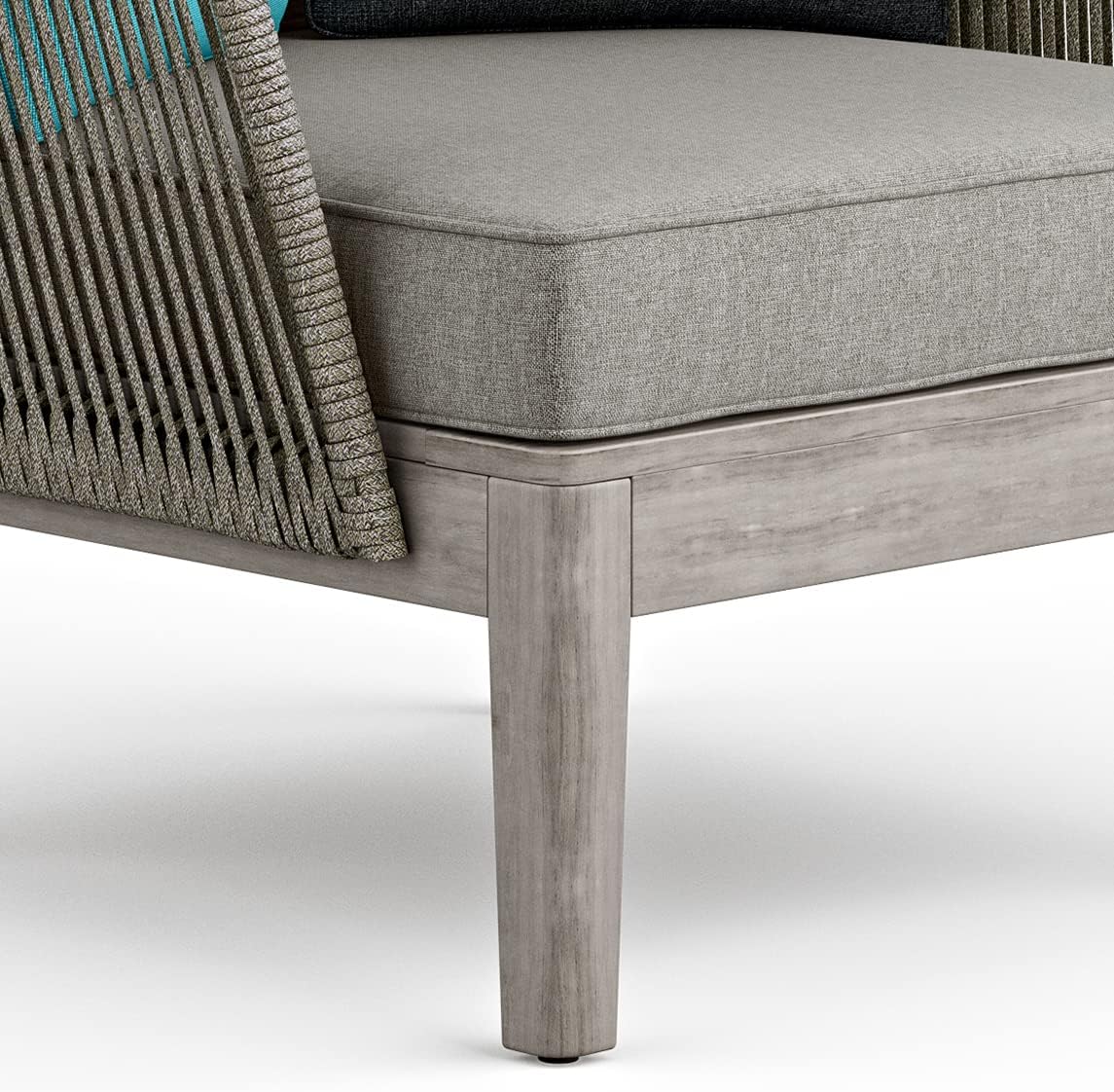 When it comes to relaxing and entertaining outdoors in modern style, our Carmel Collection knows the ropes. The outdoor conversation chair is constructed with weather-resistant rope hand-wrapped over a powder coated aluminum frame. The chair base and legs are built with solid acacia wood. Covering the thick, comfortable cushions is premium water repellent fabric. Paired with the coffee table and sofa the Carmel Outdoor Conversation Set will add a completely new dimension to your outdoor furniture.