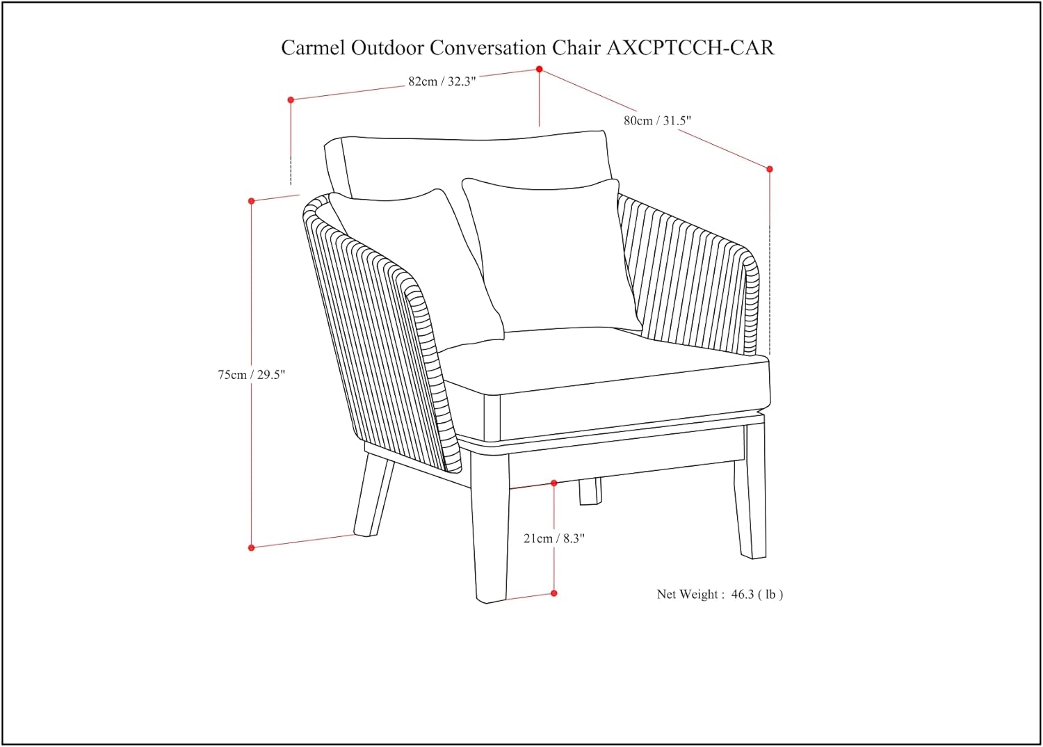 - Pair with the Carmel Outdoor Sofa and Coffee Table for the perfect backyard arrangement