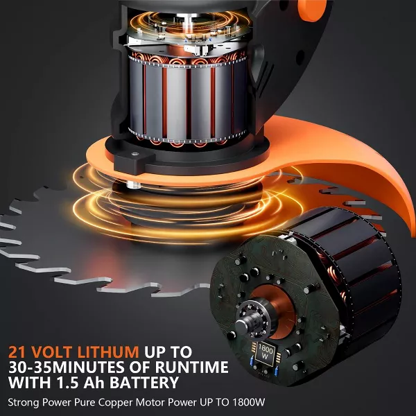 Battery Power & Chargeable: This battery-powered unit matches the performance of gas models. The 1.5 AH battery fully charges in 3 hours and supports up to 30 minutes of work, enough to trim a lawn up to half an acre.